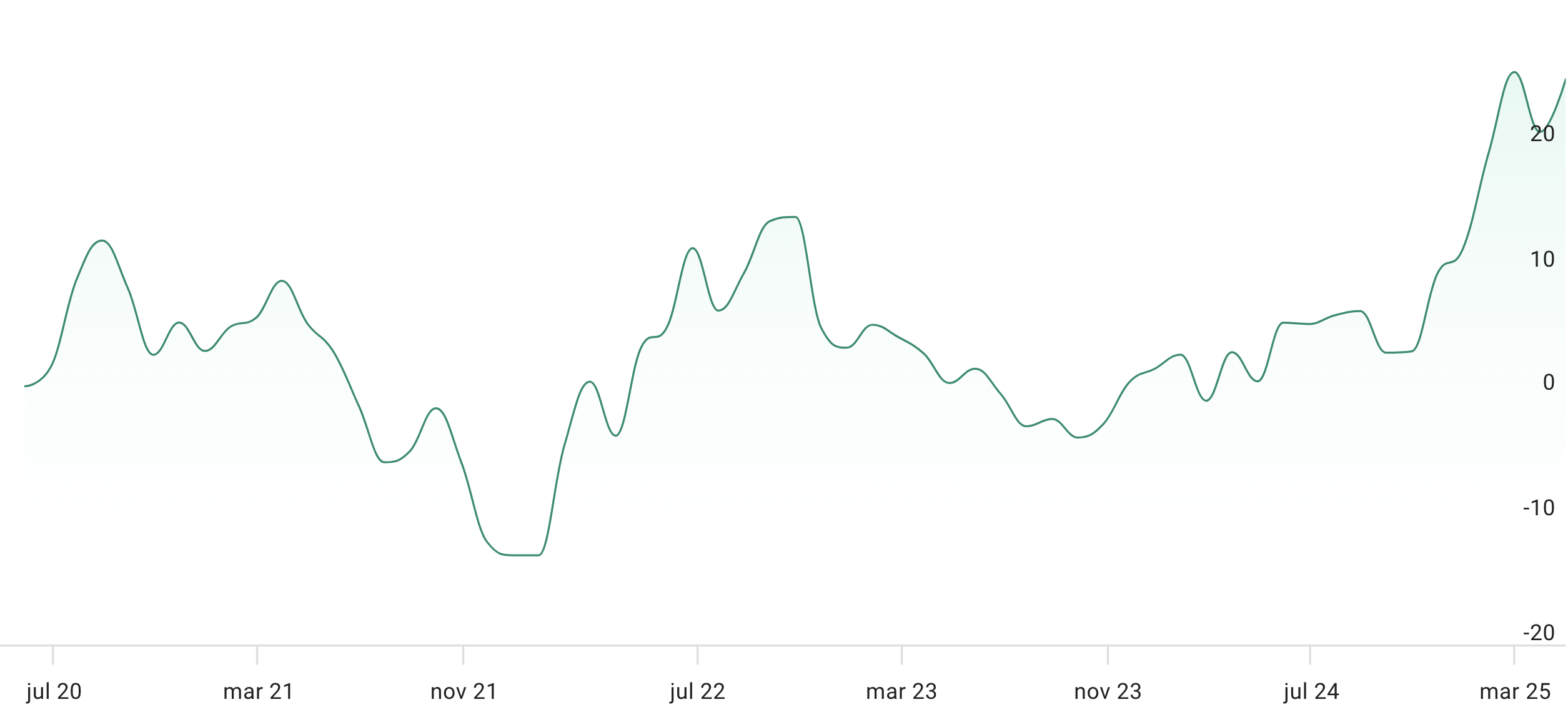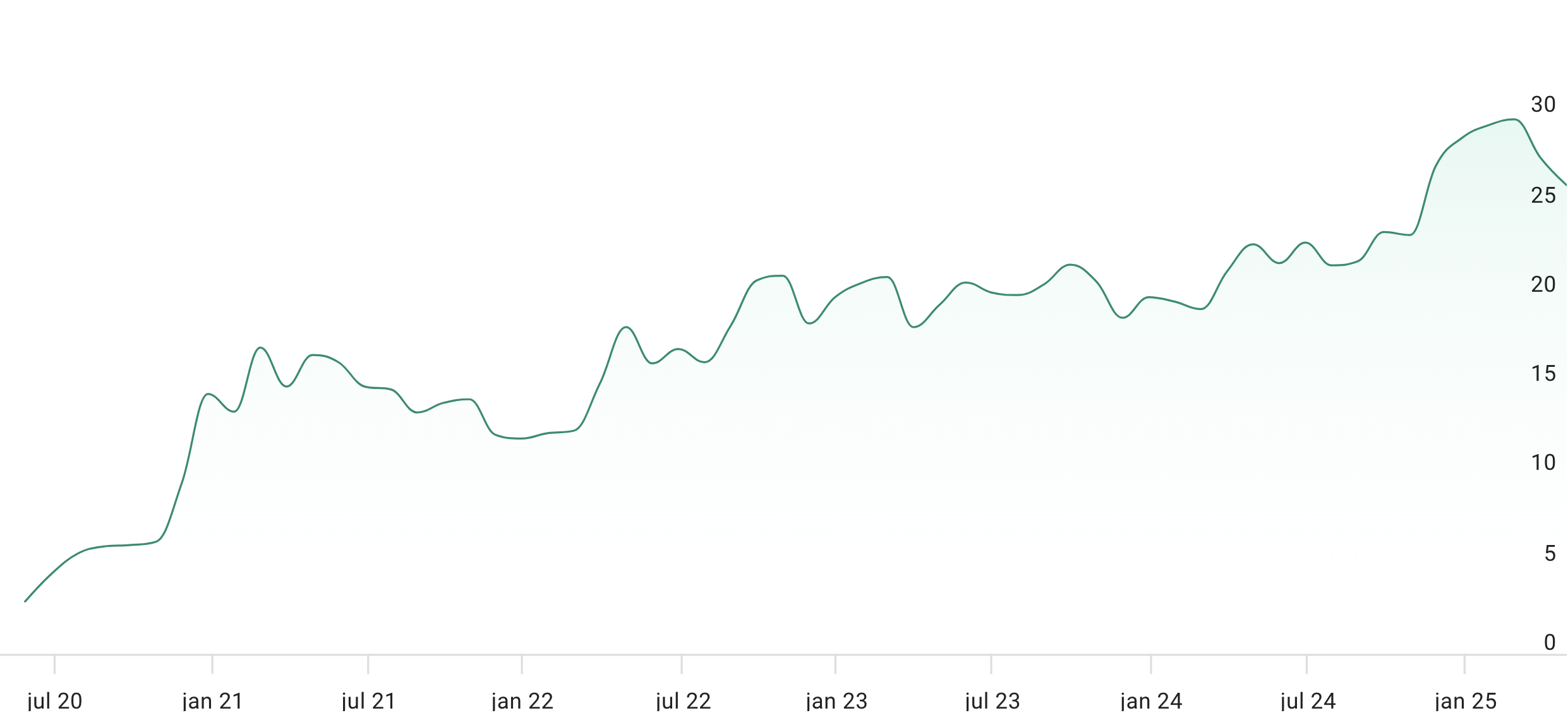• Utveckling 5 år: 26.16 % (2020 – 2025)