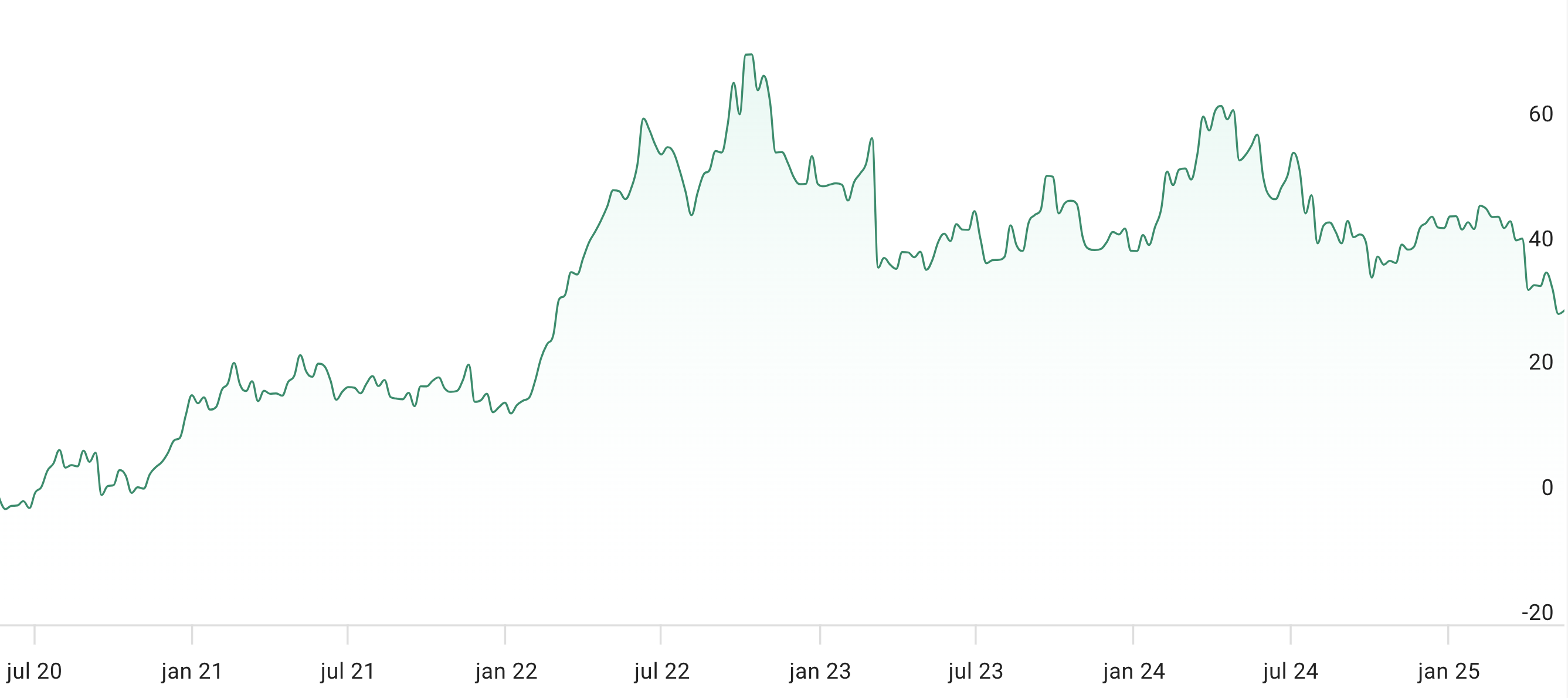• Avkastning 5 år: + 32.22 % (2020 – 2025)