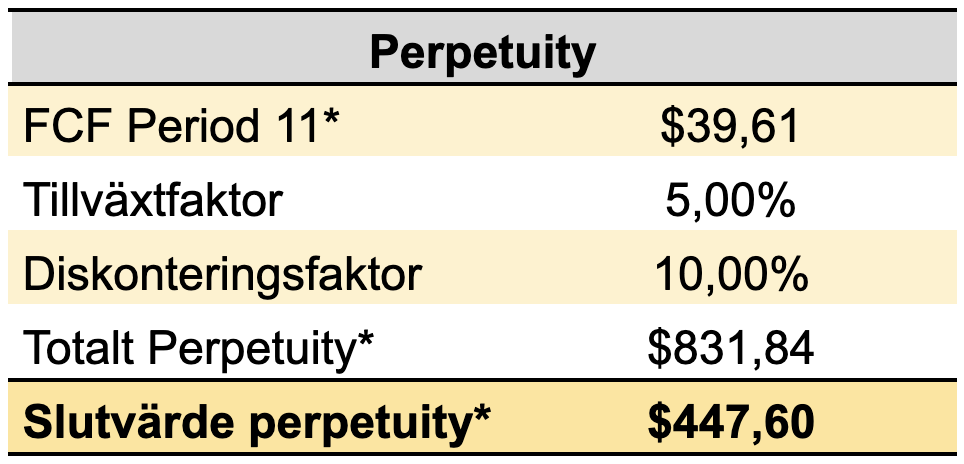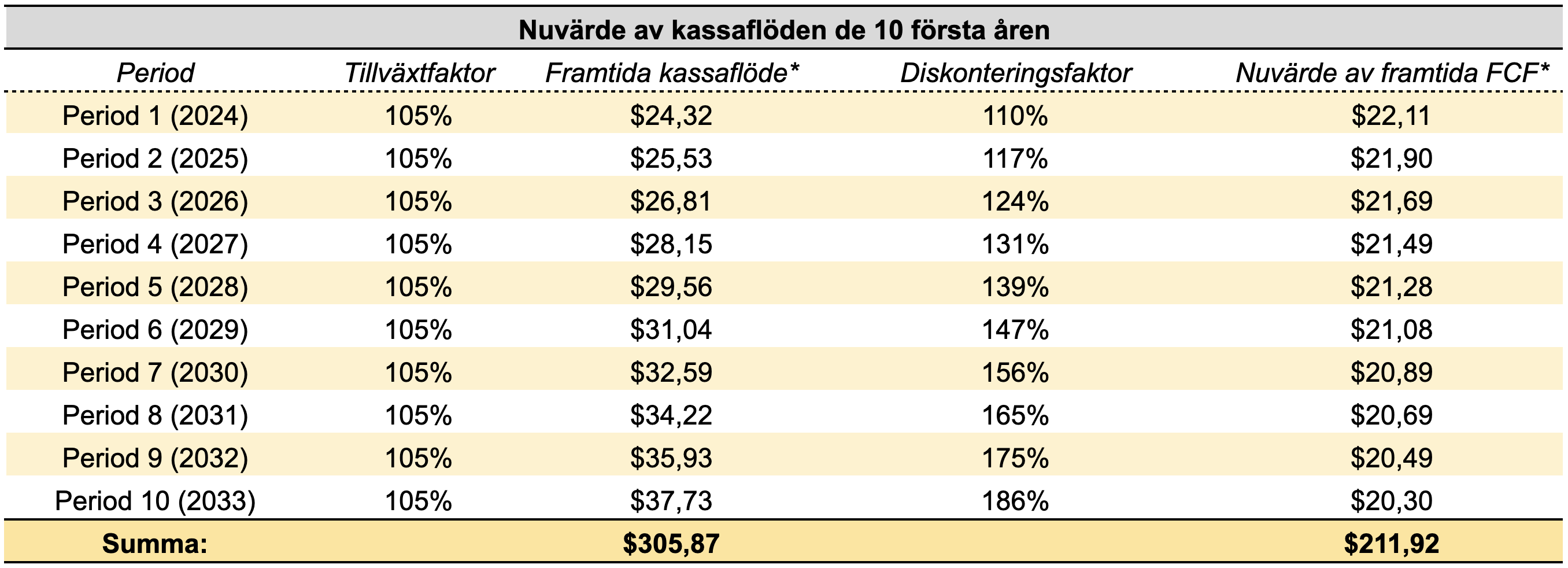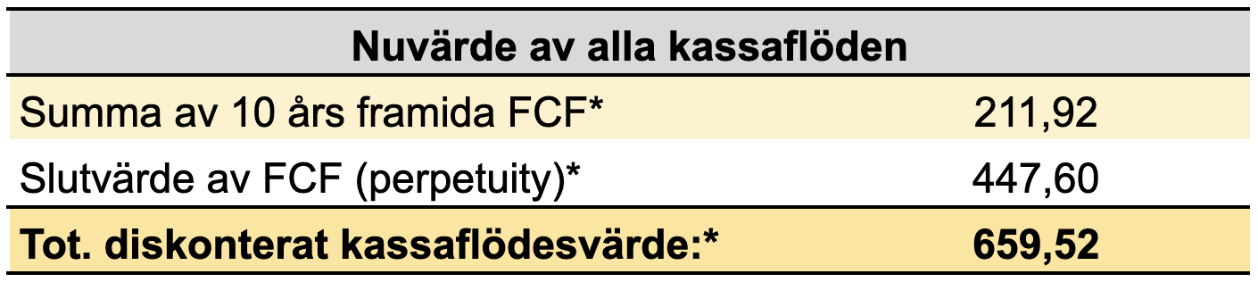 - Summera allt – du får då ett uppskattat nuvärde av företaget.