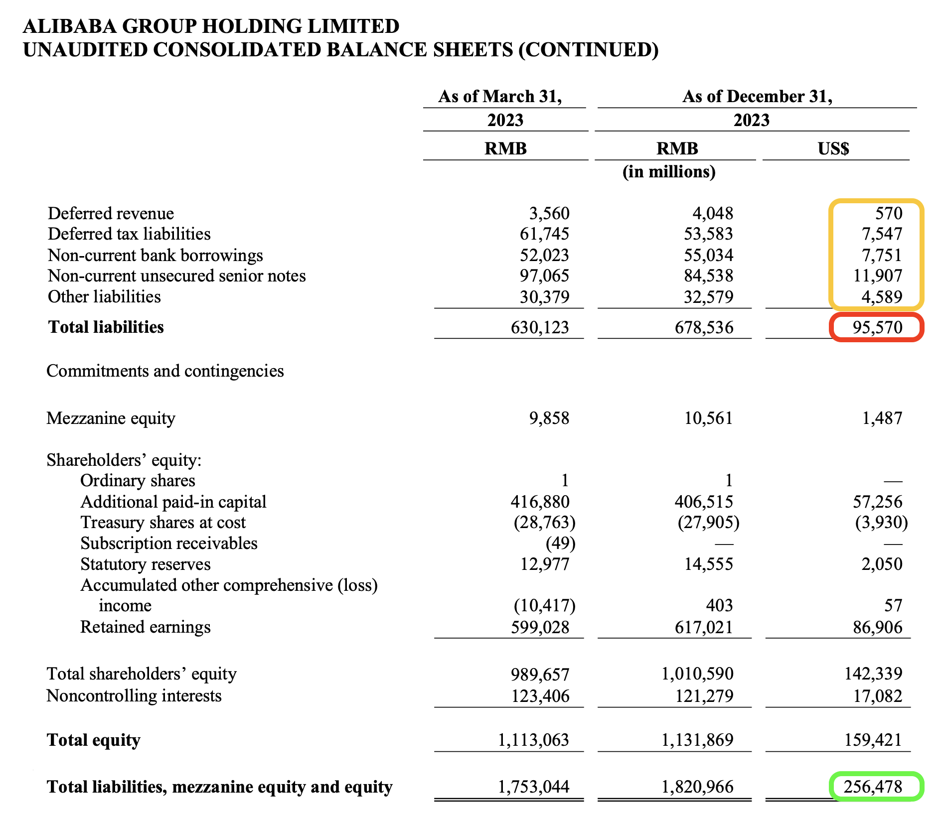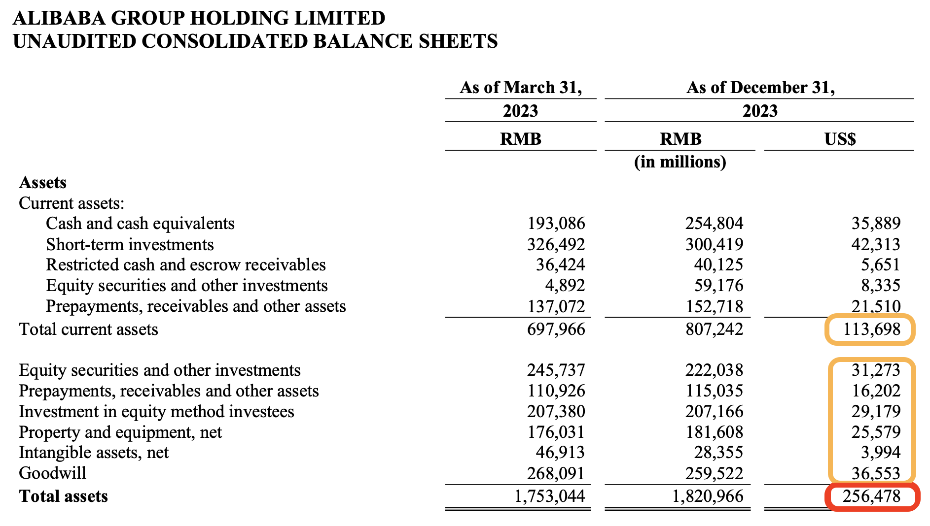 Nedan visas en skärmdump från Alibabas kassaflödesanalys från deras 3:e kvartalsrapport år 2023.