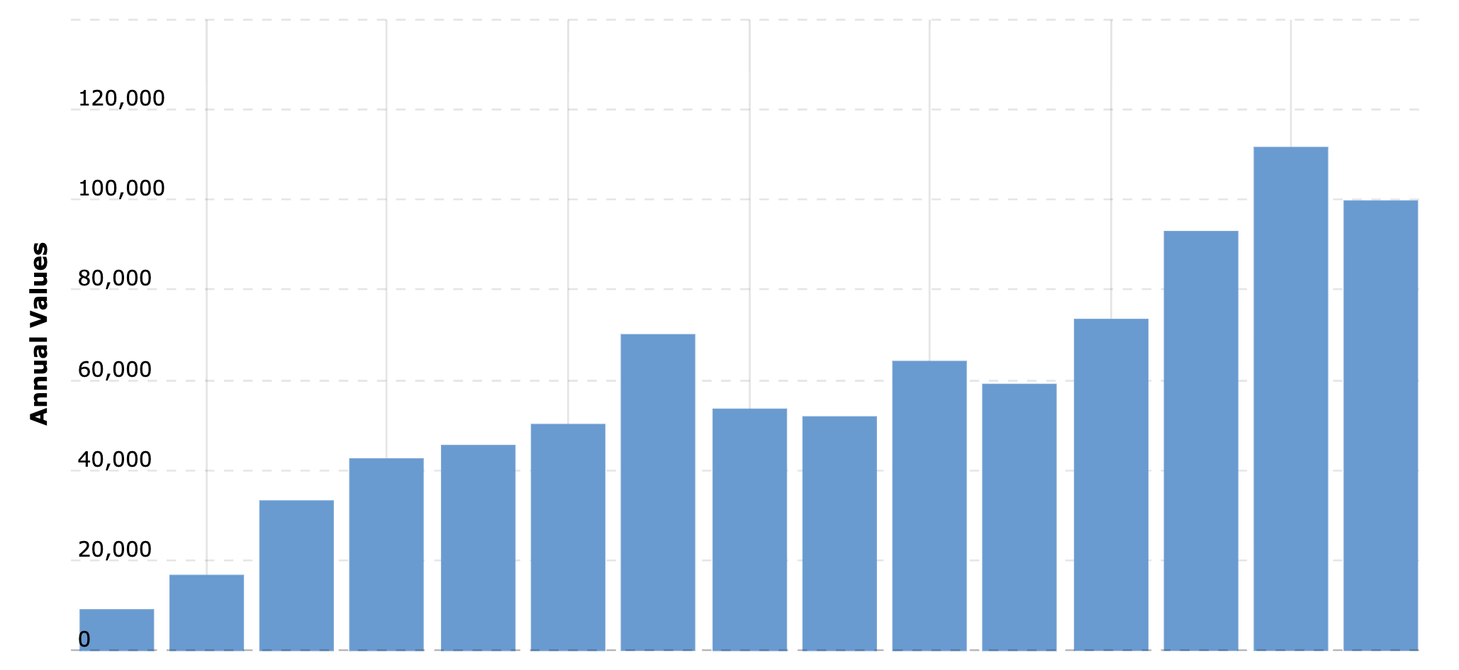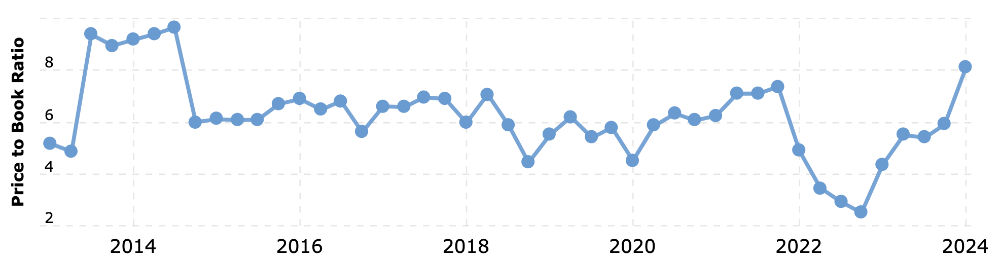 - Tillväxttakt 10 år – Under en 10-årsperiod (2014 – 2023) har fritt kassaflöde vuxit från 3,45 till 23,16 miljarder USD. Det motsvarar en ackumulerad årlig tillväxt på ca 21 %.