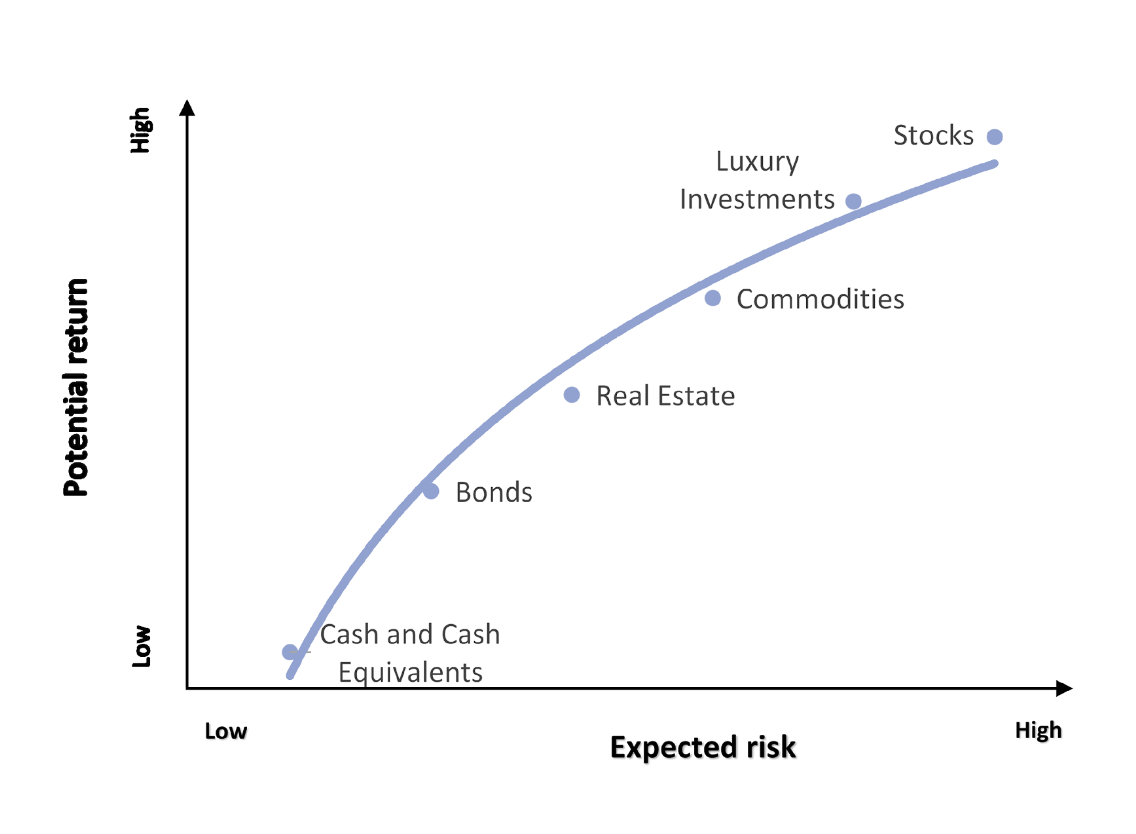 Nedan kan du se hur obligationer placeras sett till risk och avkastning jämfört med andra typer av värdepapper.