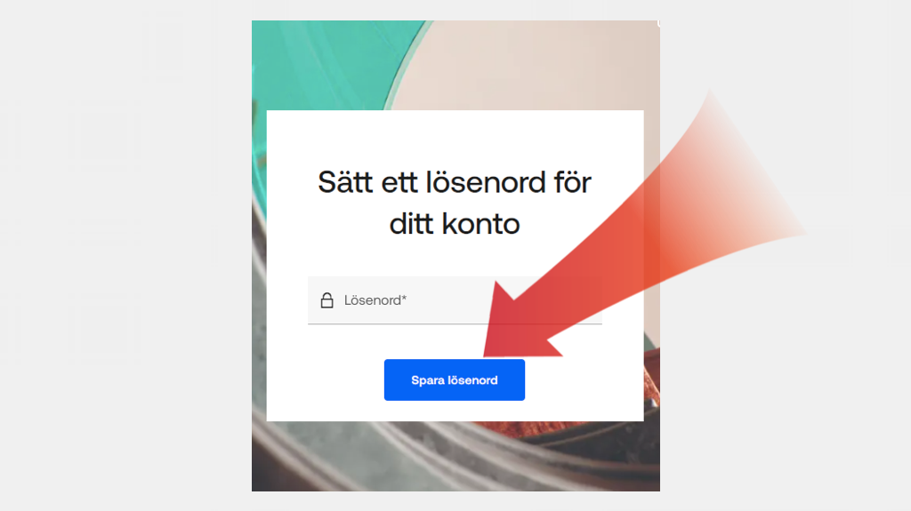 Skapa ett lösenord och spara det genom att klicka på “Spara lösenord”. Acceptera därefter Tessins användarvillkor och klicka på “Aktivera mitt konto” →