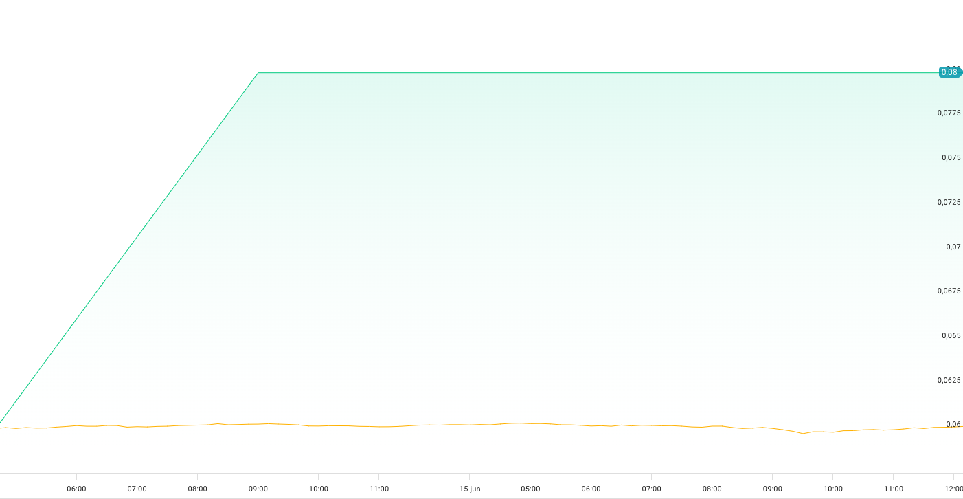 Exempel: Bilden nedan visar prisutvecklingen för Parans aktiekurs under en vecka. Vi kan se att det inte genomförs särskilt mycket köp- och säljordrar. Dess aktiekurs har alltså låg likviditet och hög spread, vilket gör det svårt att följa dess prisutveckling som endast blir en rak linje.