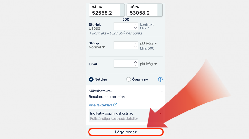 Slutligen, ange beloppet och klicka sedan på ”Ange order” för att genomföra din investering.