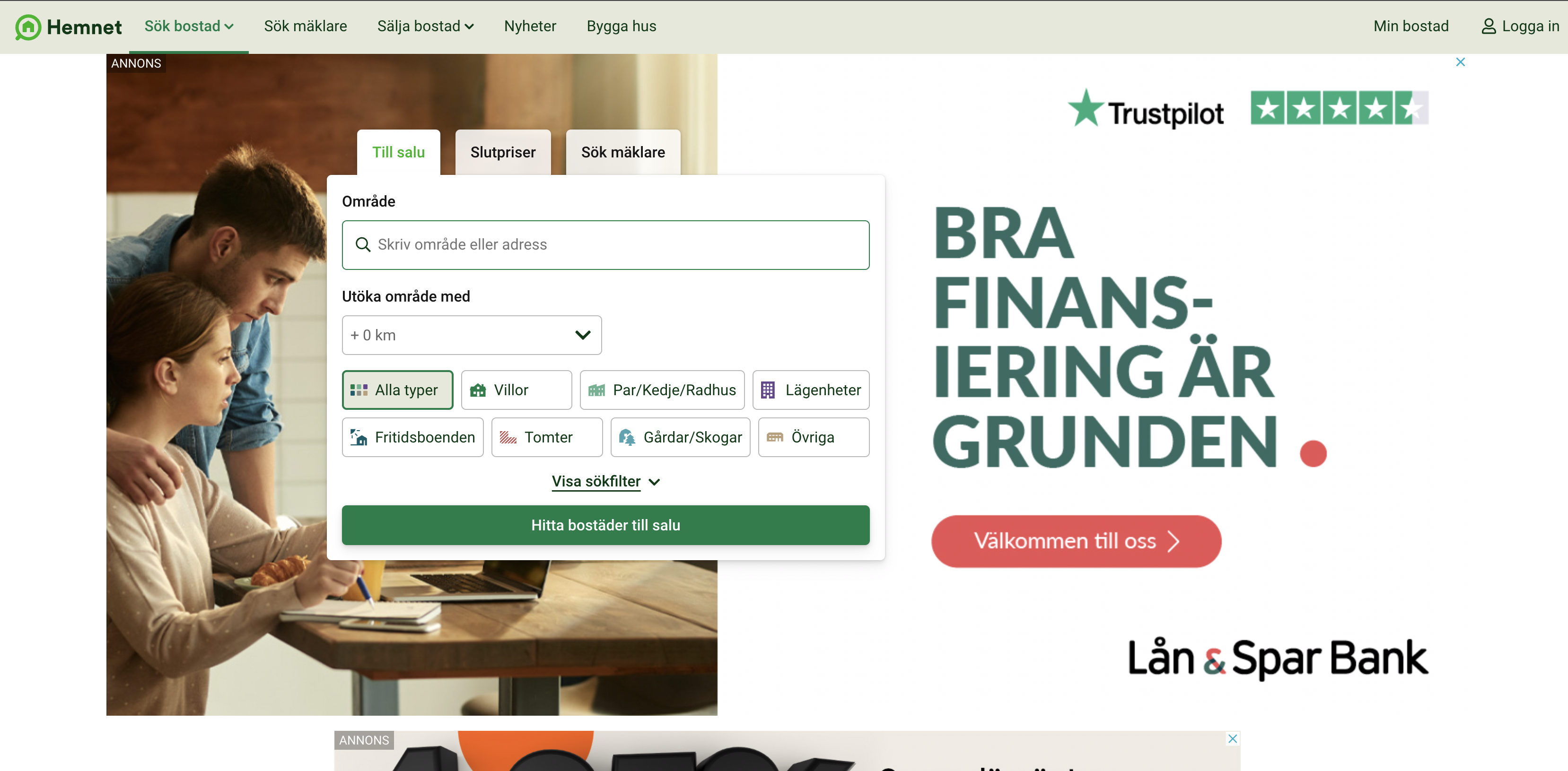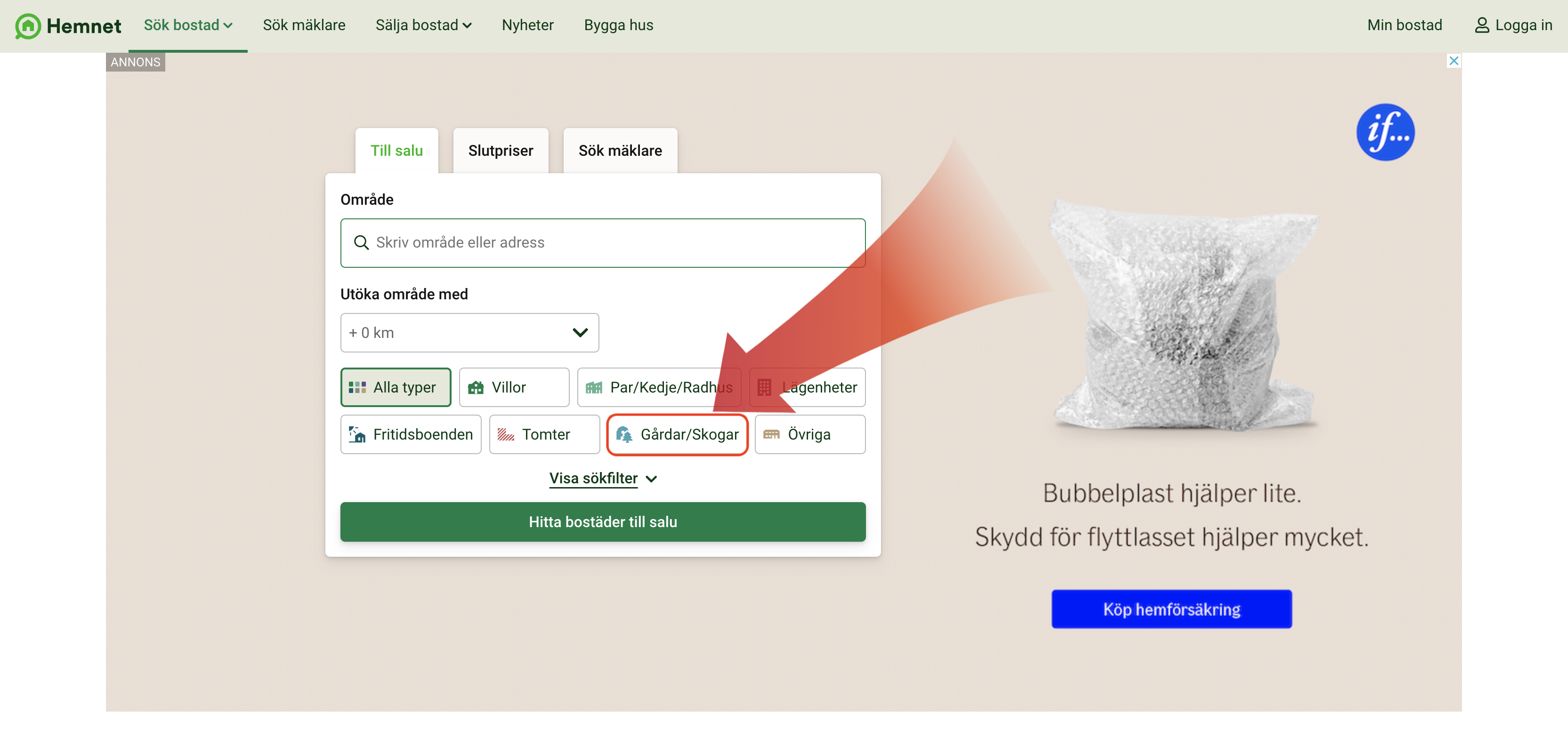 Första steget är att gå till Hemnets egen hemsida, Hemnet.se.