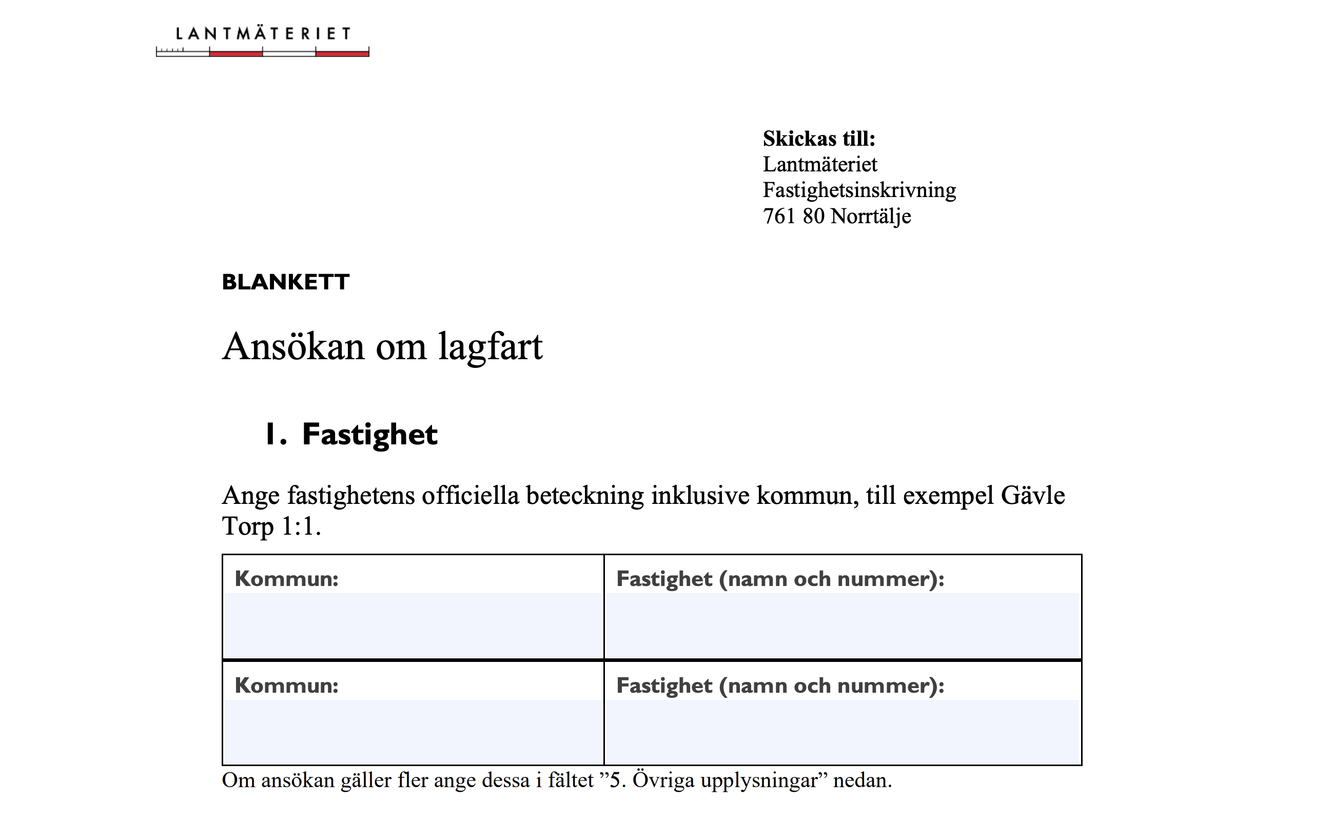 För att slutföra ett fastighetsköp behöver du registrera ägandet genom att ansöka om lagfart. Denna ansökan lämnas in till Lantmäteriet och måste göras senast tre månader efter köpet. Om förvärvstillstånd har krävts, ska ansökan istället skickas in inom tre månader från det att tillståndet beviljades och köpet genomfördes.