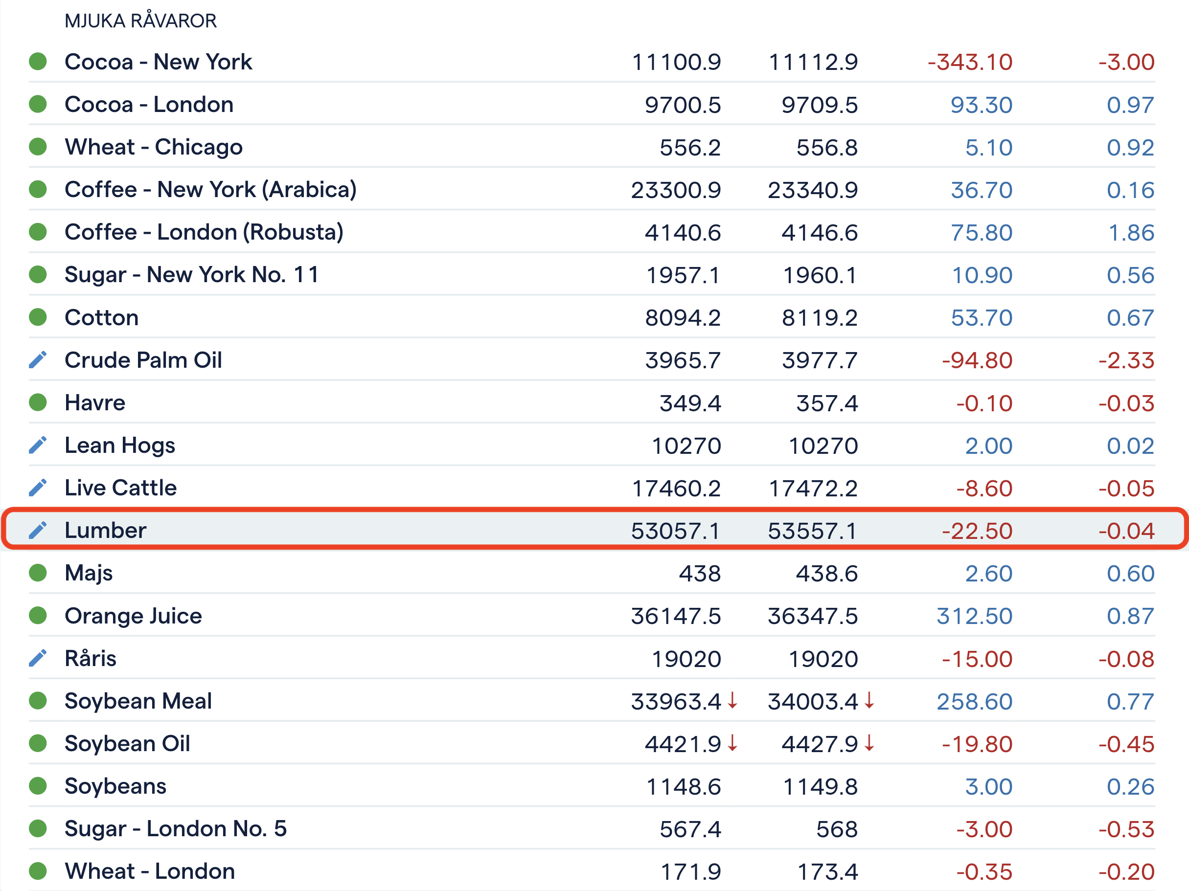 Utveckling av skogspriser (%)