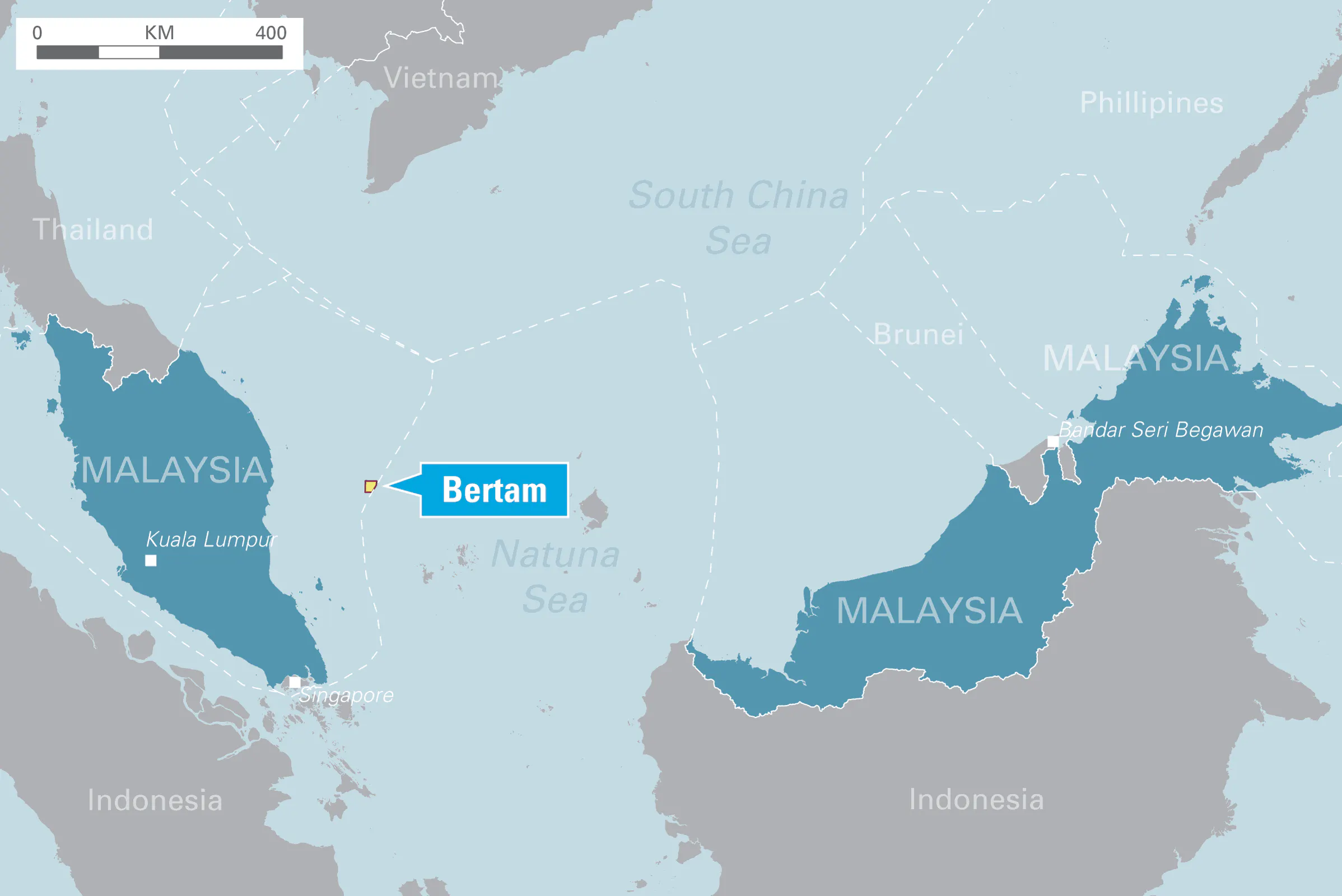 I Malaysia utvinner IPCO olja från området Bertam. Det ligger offshore (se bild nedan) och är ett av bolagets mest lönsamma tillgångar. Bruttomarginalen från utvunnen olja uppgår här till cirka 55 %. För helåret 2024 låg produktionskapaciteten på 2 800 fat per dag.