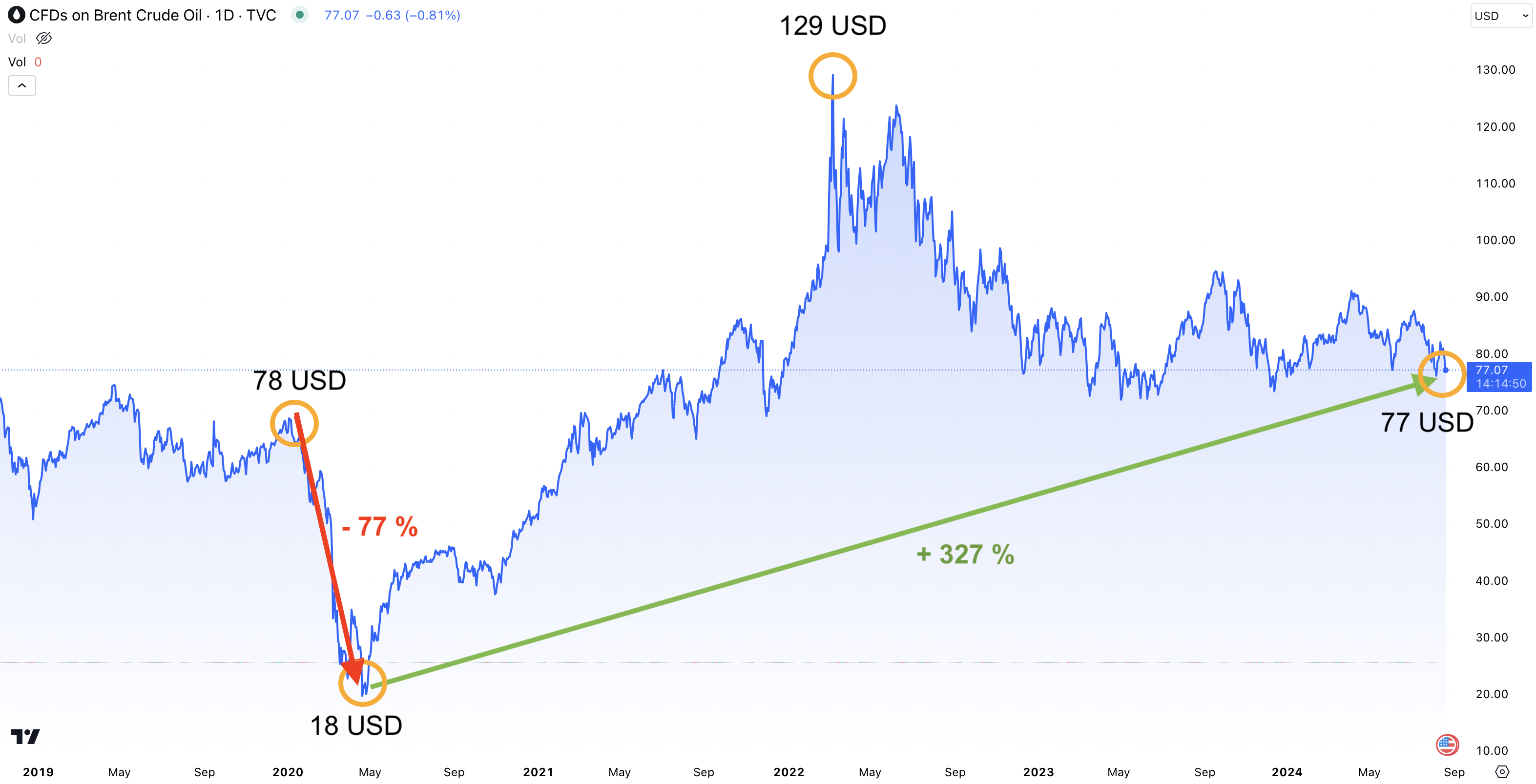 Crude Oil prisutveckling 2019 – 2024: