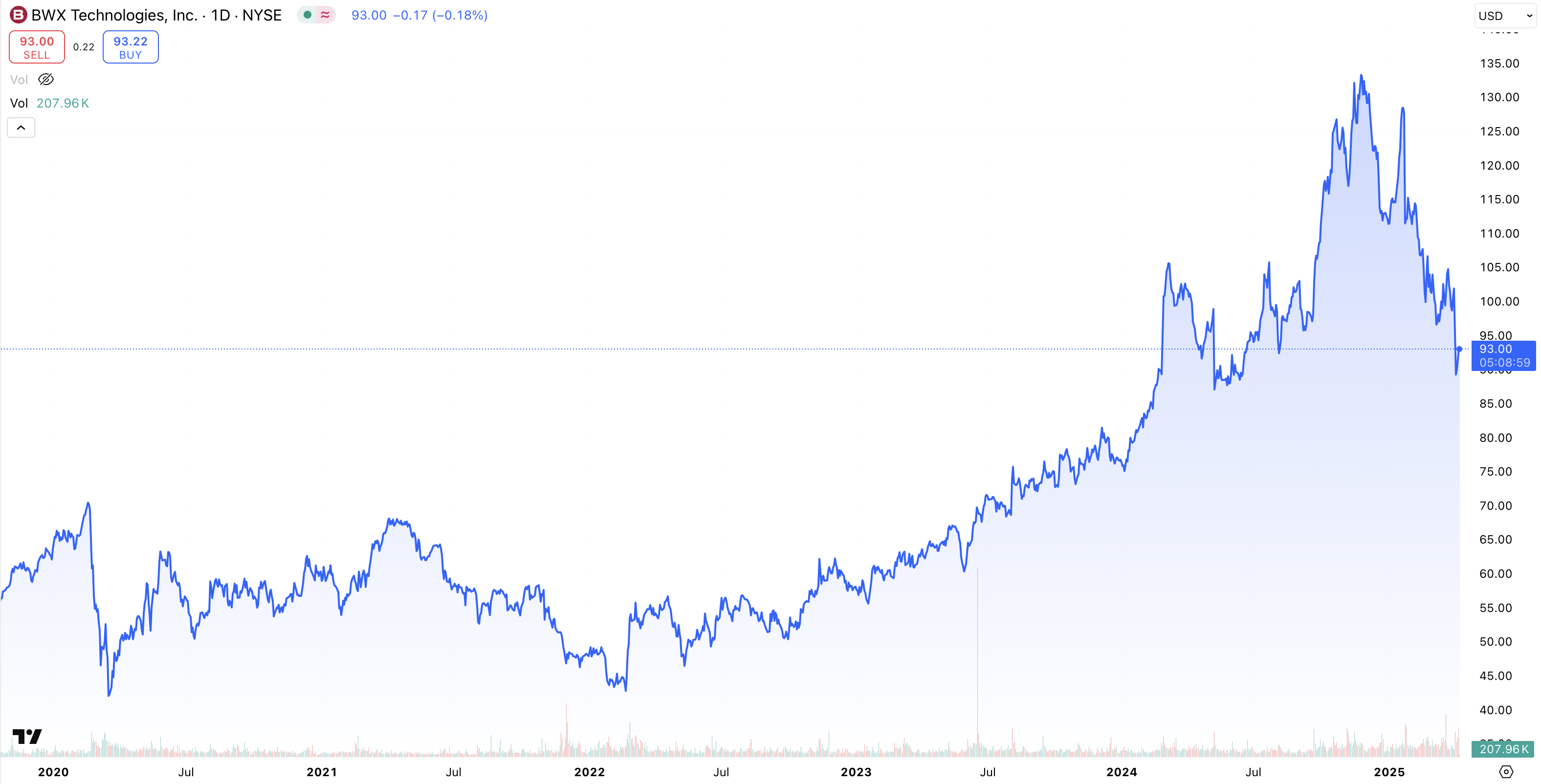 | 12 | BWX Technologies | 85 % | Underleverantör | 148 |