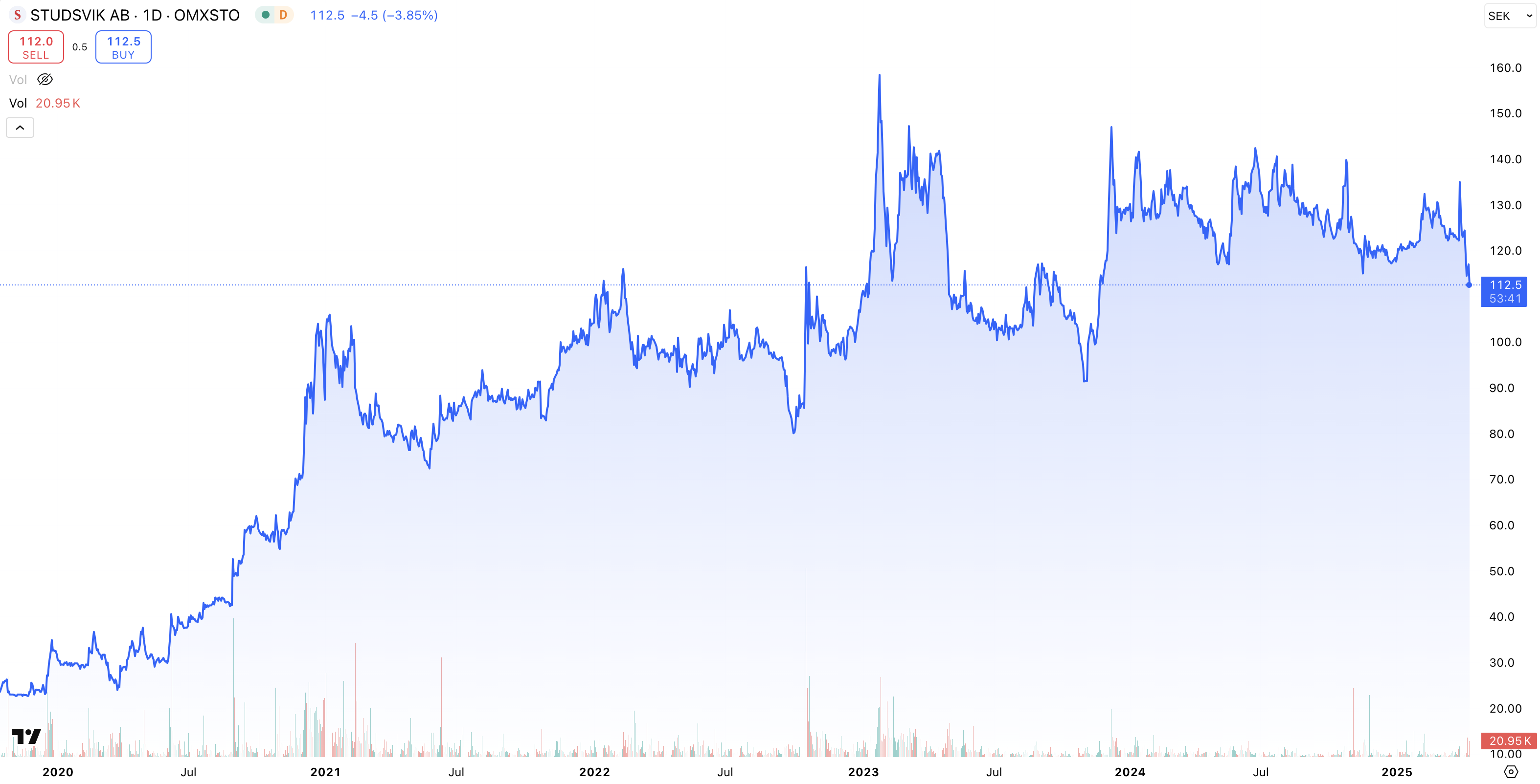 - Avkastning senaste 5 åren: + 310 % (2020 – 2025)