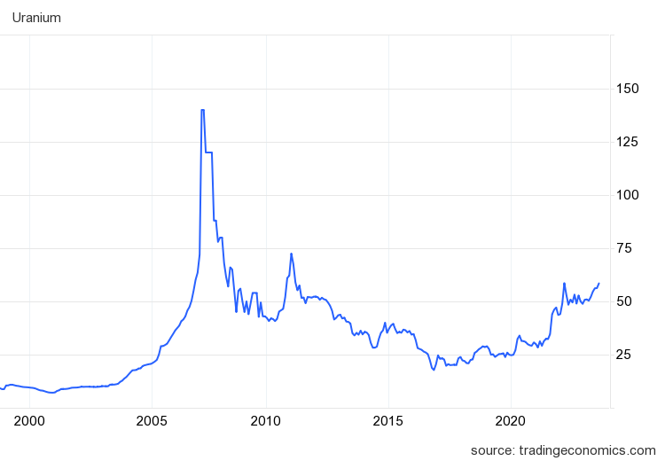 Att både produktion av uran och kärnkraft är hårt koncentrerade till endast ett fåtal länder gör marknaden känslig för handelskrig. Skulle exempelvis USA börja göra sanktioner mot import av uran från Kazakstan kan det komma att påverka spotpriset positivt.