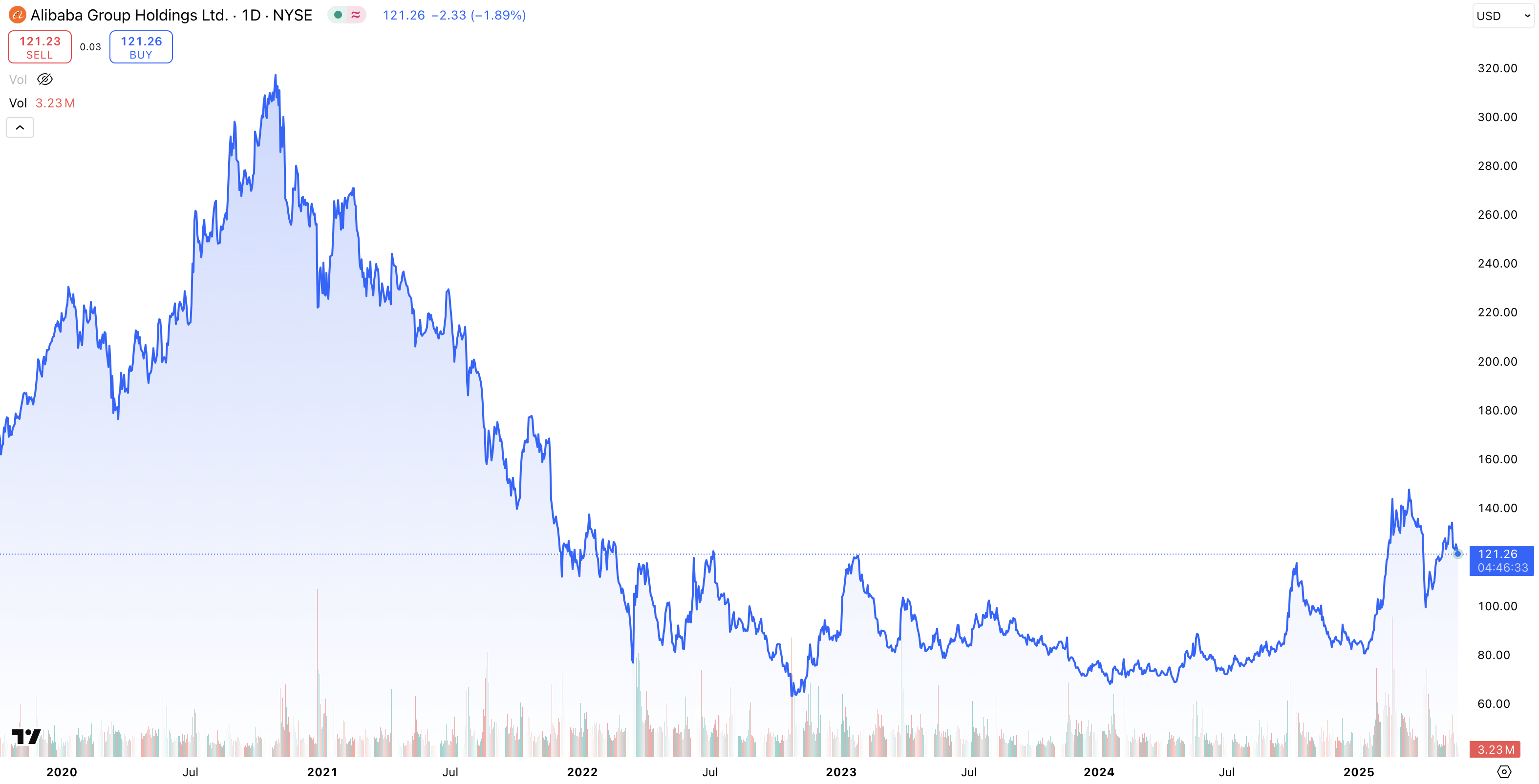 Alibaba Group är ett kinesiskt e-handelsbolag. Bolaget erbjuder olika tekniska onlinetjänster som förenklar för privatpersoner och företag att bedriva handel i Alibabas egna ekosystem. Deras största e-handelsplattformar är Taobao och Tmall som står för cirka 60 % av bolagets intäkter. Alibaba erbjuder även olika molnbaserade tjänster.