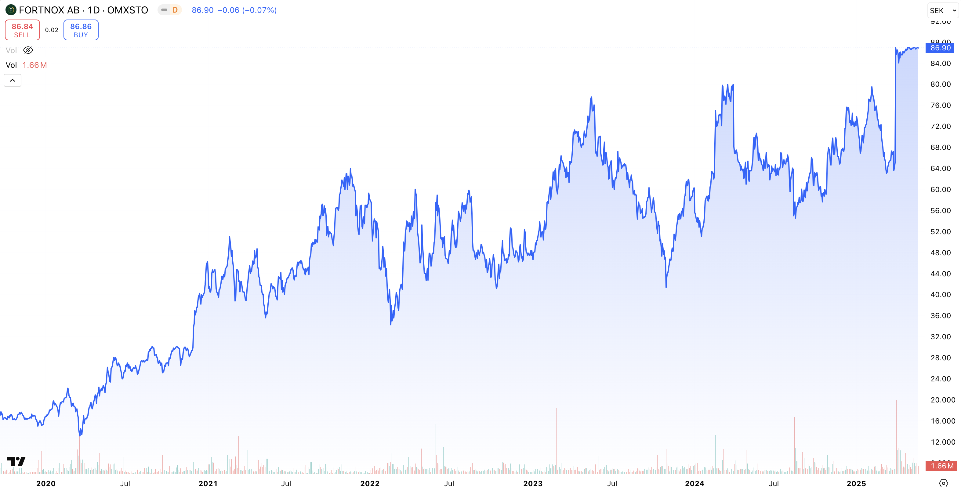 • Kursutveckling 5 år: – 43 % (2020 – 2025)