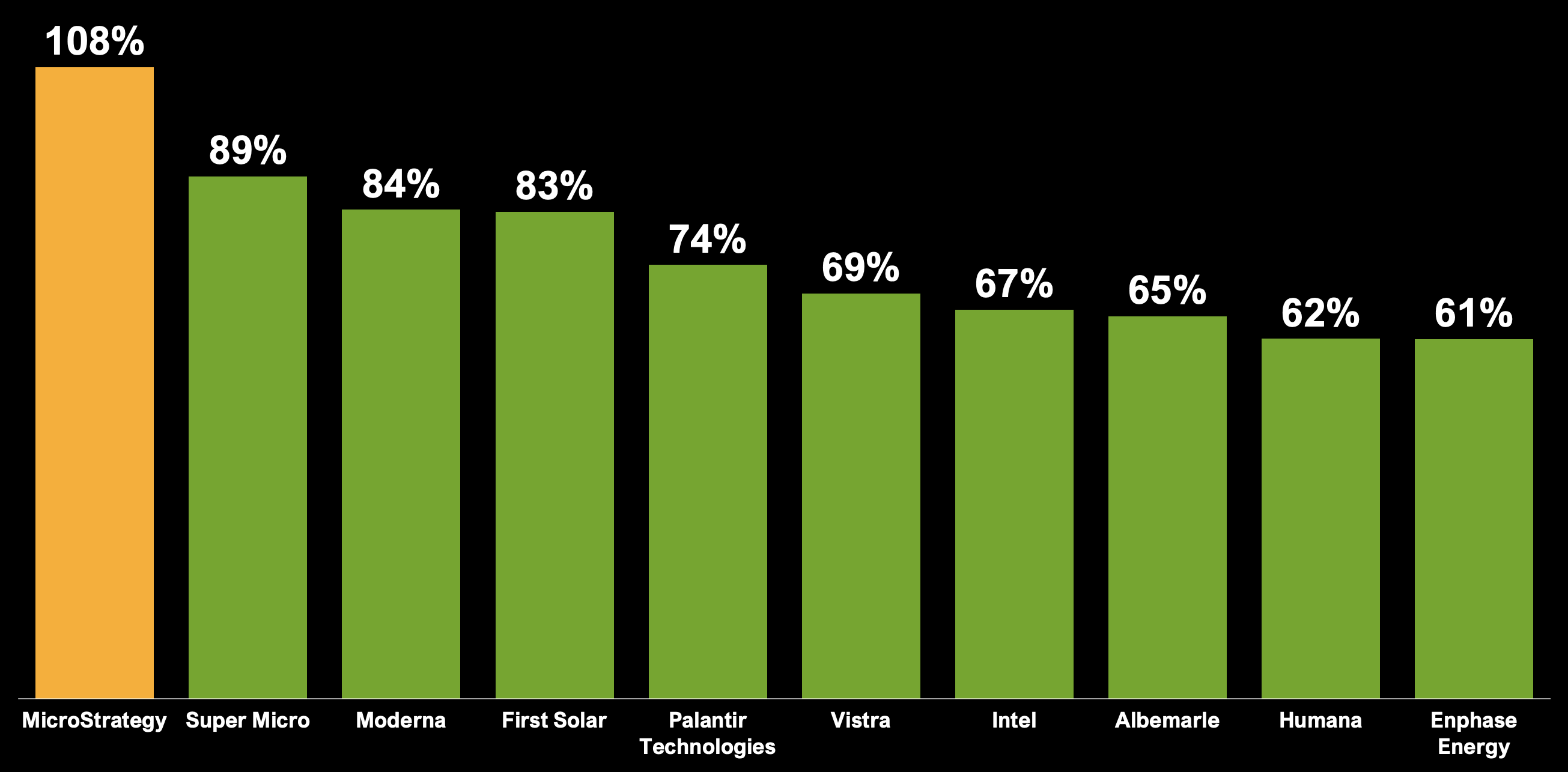 S&P 500-indexet, som följer utvecklingen för de 500 största bolagen i USA, har under samma period givit en genomsnittlig avkastning på cirka 10 % per år. MicroStrategy har alltså avkastat 8 % mer än detta jämförelseindex.