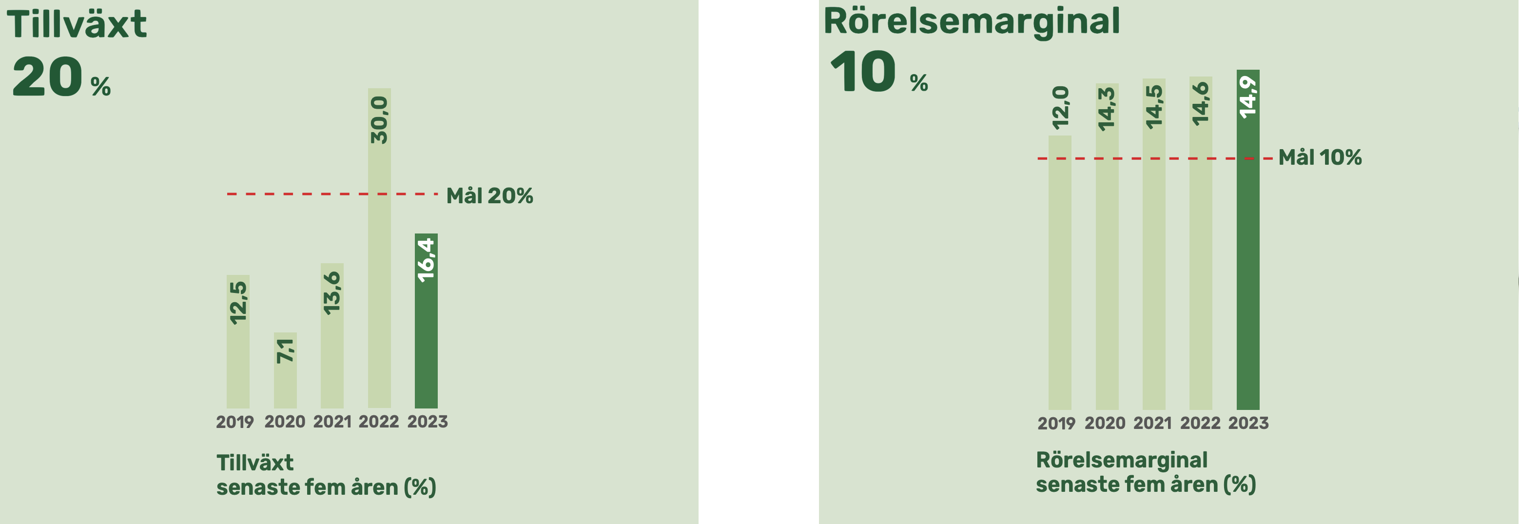 Att vinsttillväxten är lägre än omsättningstillväxten beror på tillfälligt högre kostnader år 2024. Innan dess har vinsttillväxten legat högre än omsättningstillväxten.