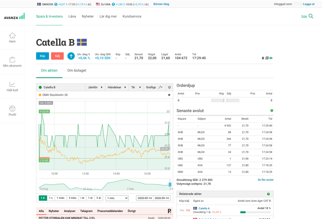 - Hög användarvänlighet – Man har gjort det enkelt att navigera på Nordnets och Avanzas sajter och appar. Information visas på ett tydligt sätt och det är enkelt att hitta vad man söker efter.