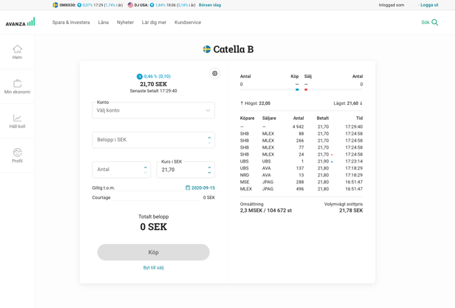Avanza courtageklass vid aktiehandel – Stockholmsbörsen: