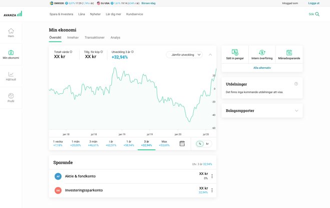 - Hög användarvänlighet – Avanza arbetar ständigt med att uppdatera och förbättra sin hemsida vad gäller navigering och hur information visas. De ligger i framkant vad gäller användarvänlighet och hur information angående sparande och investeringar visas.