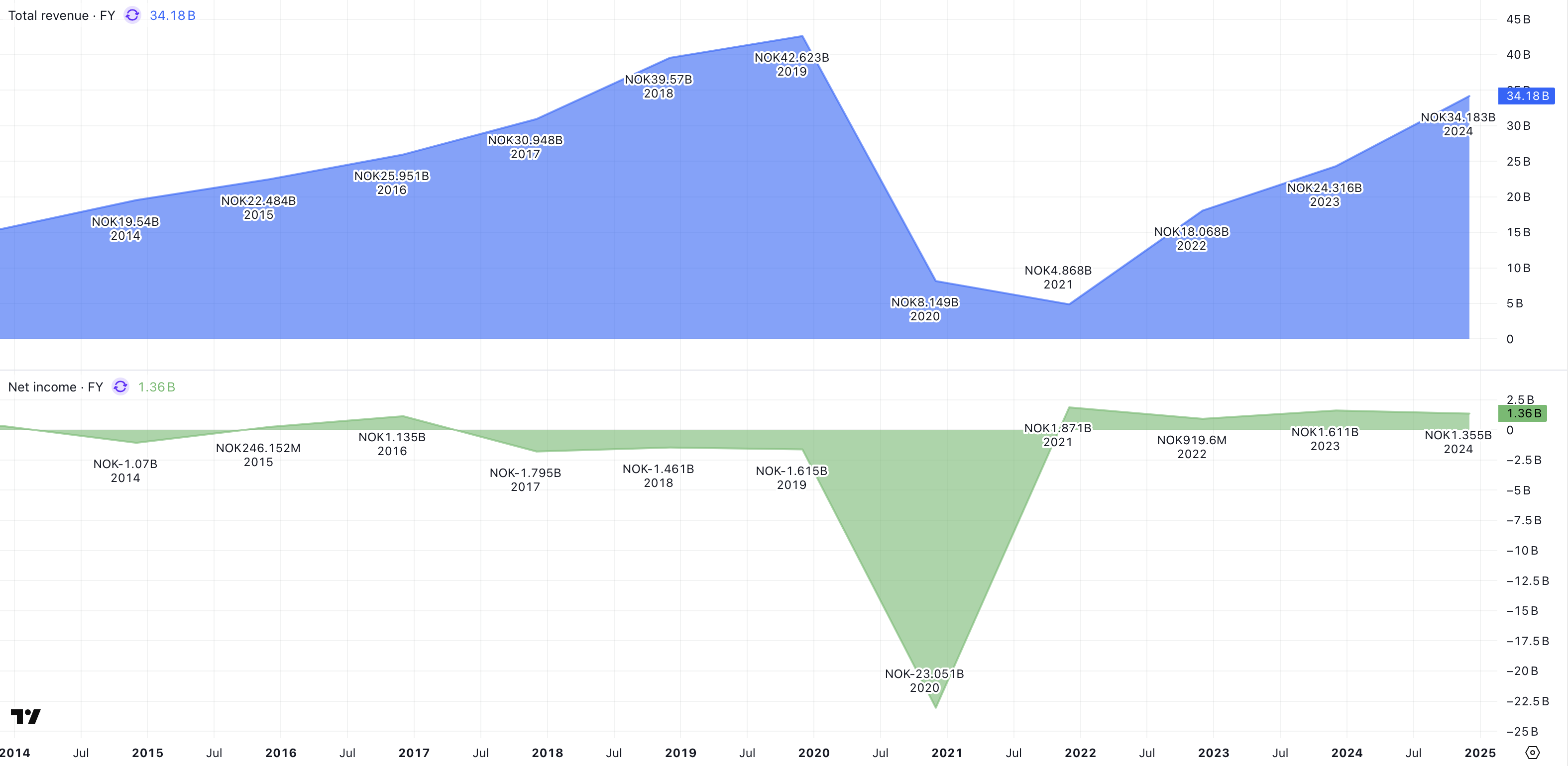 I takt med att människor blivit vaccinerade har omsättningen återhämtat sig något. Omsättningen befinner sig dock inte på de nivåer som innan pandemin då den uppgick till totalt 42 miljarder NOK. År 2024 uppgick omsättningen till endast 34 miljarder NOK, alltså 17 % lägre.