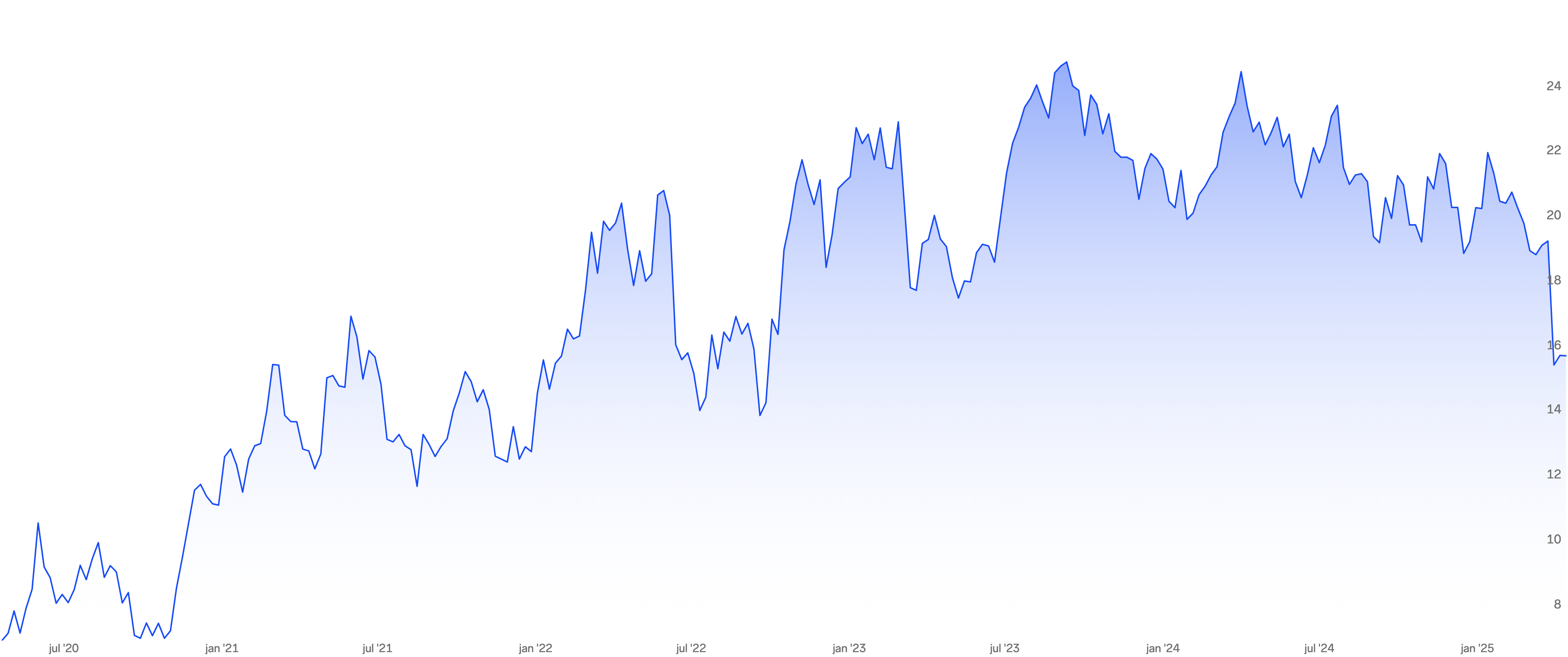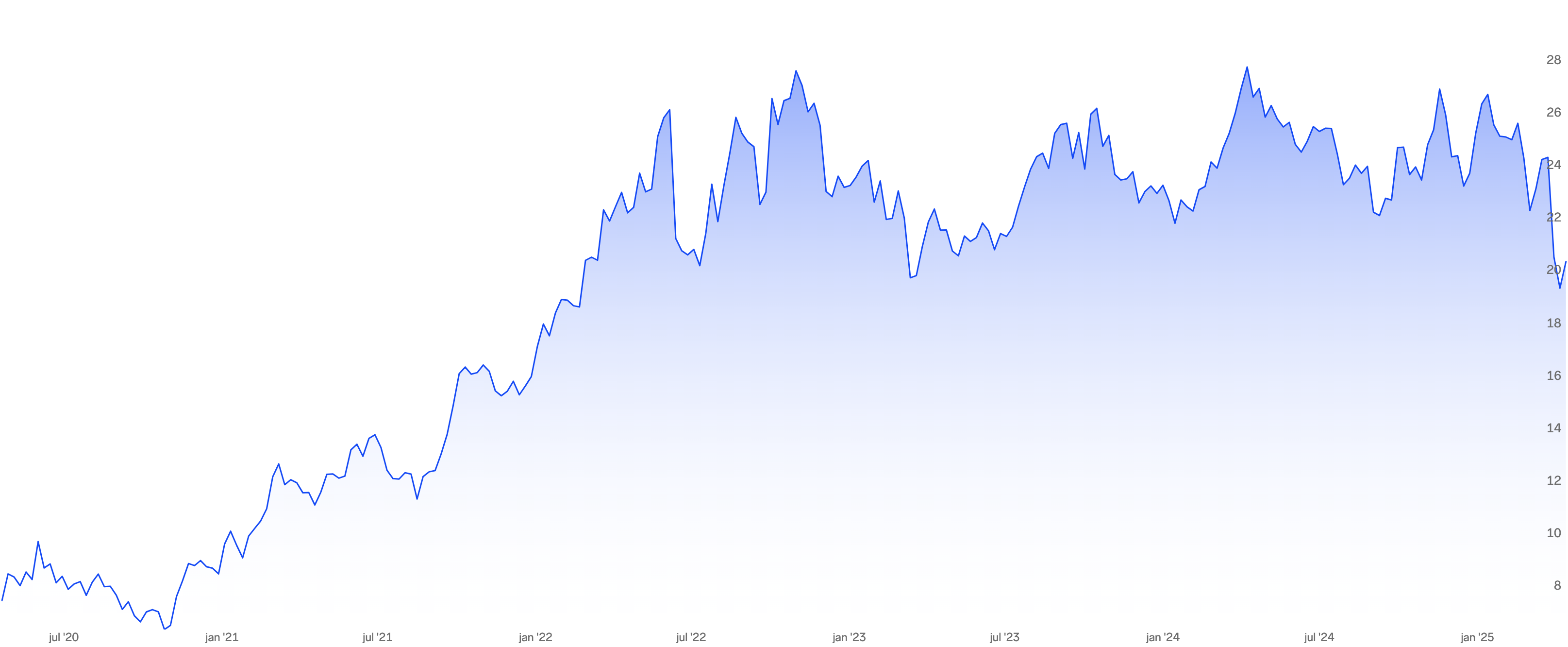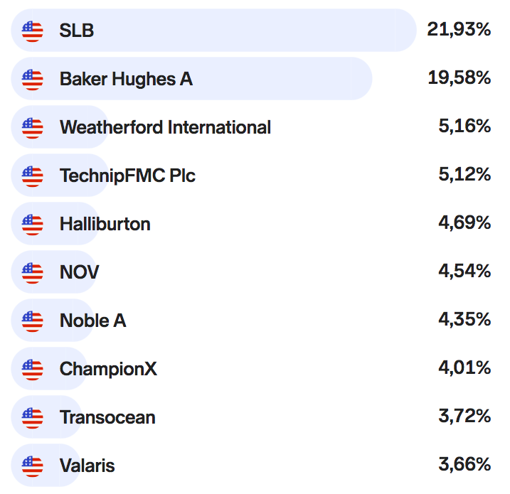 I tabellen ovan visas fondens största innehav. De tre största innehaven var i början av 2025 SLB, Baked Hughes och Weatherford International.