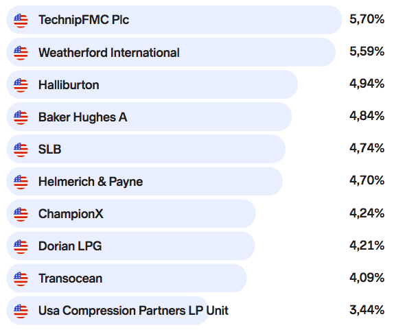 | 13 | iShares U.S. Oil Equipment & Services ETF | + 124 % | SLB, Baker Hughes, Weatherford International | 0.40 % |