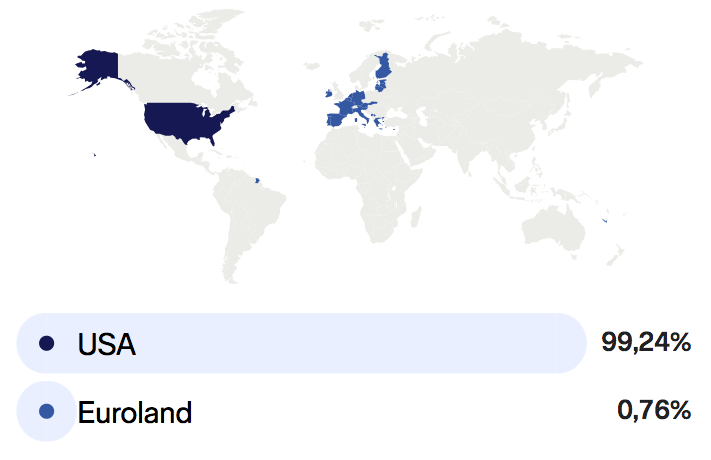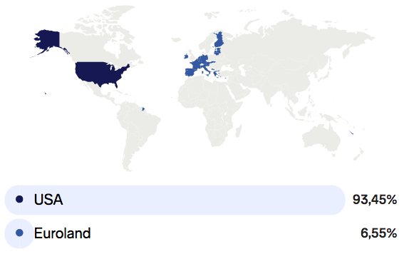 Tabellen ovan visar mot vilka länder som fonden hade störst exponering mot i början av 2025. Fonden bestod både bolag etablerade i USA och Europa.
