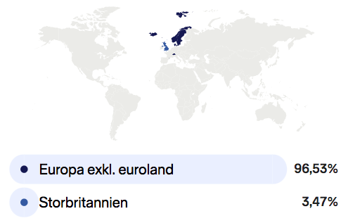 Tabellen ovan visar mot vilka länder som fonden hade störst exponering mot i början av 2025. Bolag etablerade i USA och Storbritannien stod för störst andel av fondens totala portfölj.