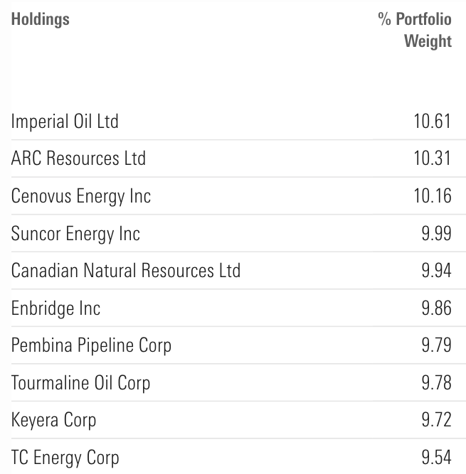 | 3 | BMO Equal Weight Oil & Gas Index ETF | + 185 % | ARC Resources, Tourmaline Oil Corp, Pembina Pipeline | 0.55 % |