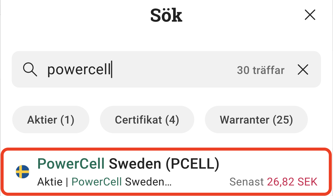 4. Sök efter PowerCell Sweden