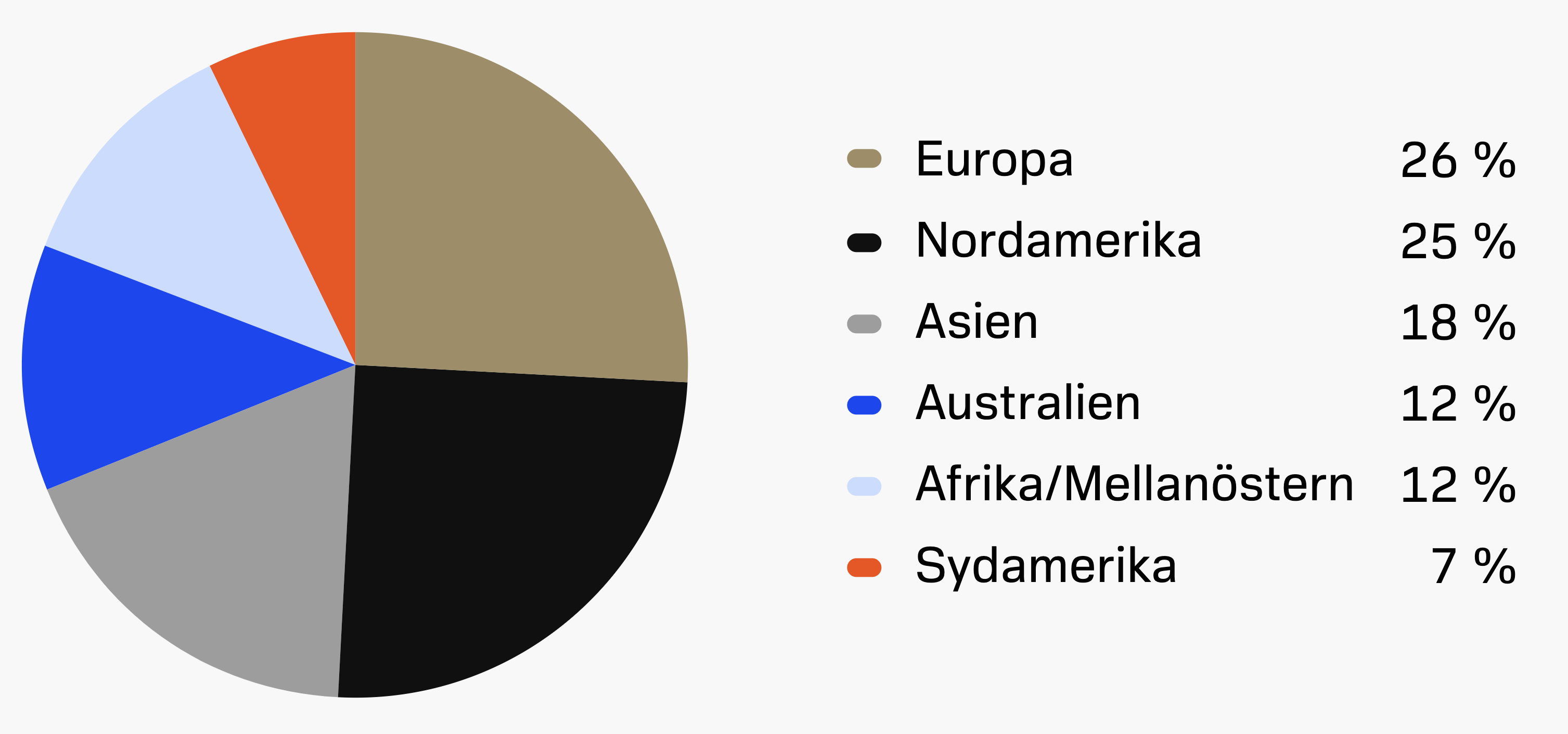 - Viktiga marknadsområden: Nordamerika (24 %), Australien (21 %) och Afrika/Mellanöstern (20 %)