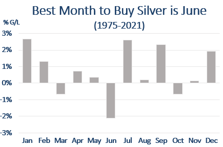 De fick fram statistik på att silverpriset tenderar att sjunka som mest i juni. Därmed kan juni månad ses den bästa månaden att investera i silver, eftersom dess pris tenderar att stiga igen i juli.