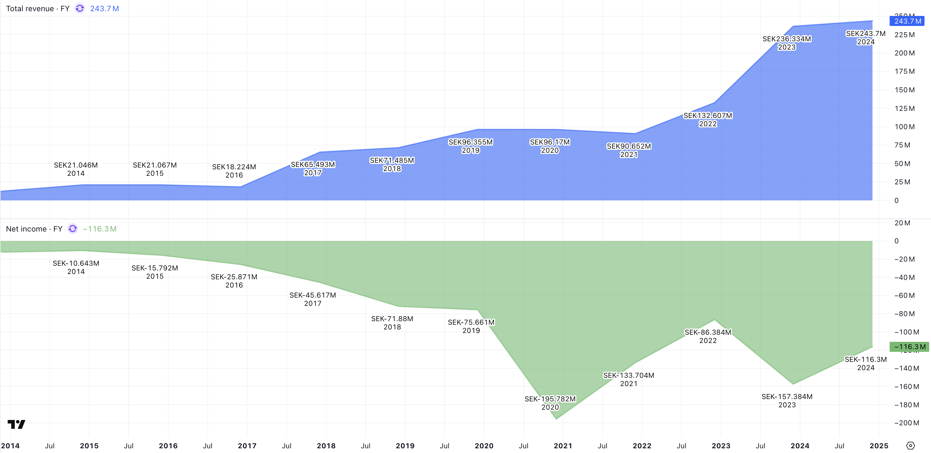 - 2024 – Under året förhandlade bolaget fram en utökad lånefacilitet om 50 miljoner kronor med befintliga långivare. Detta lån eliminerade behovet av ytterligare kapitaltillskott från aktieägarna.