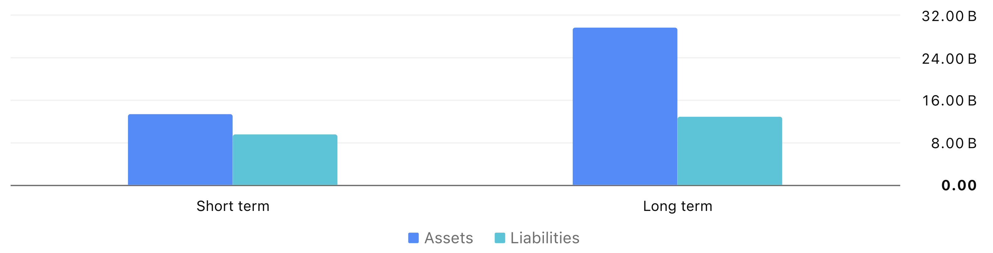 Bolagets långfristiga skulder uppgick samtidigt till 22,37 miljarder SEK. Av dessa uppgick deras långfristiga skulder till nästan 11 miljarder SEK och eget kapital till lite nästan 21 miljarder kronor. Bolaget är med andra ord finansierat med relativt stora lån. Skulden kan anses vara hög i relation till hur mycket likvida medel som bolaget har.