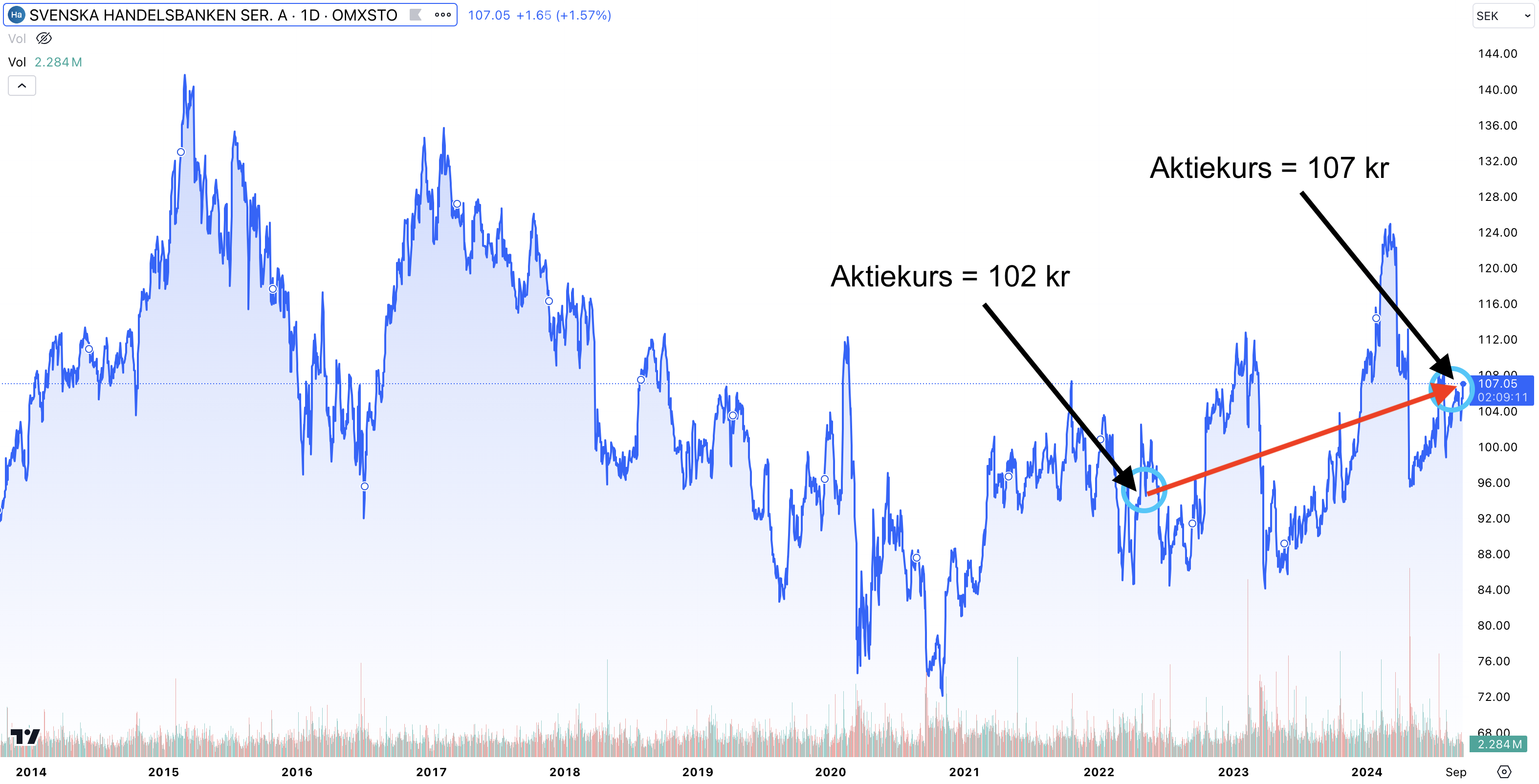 Handelsbanken aktiekurs historik, 2014 – 2024