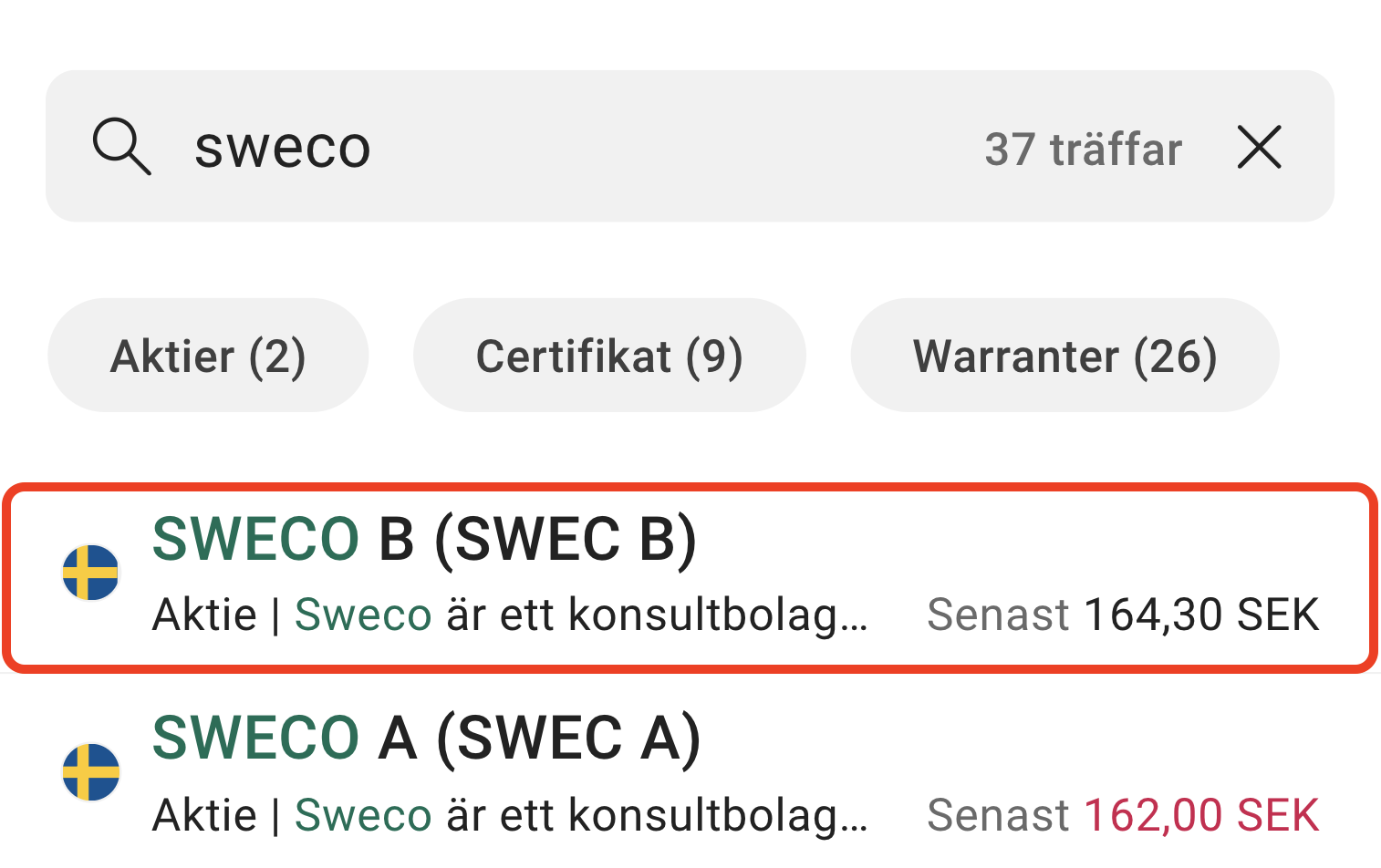 4. Sök efter Sweco aktie