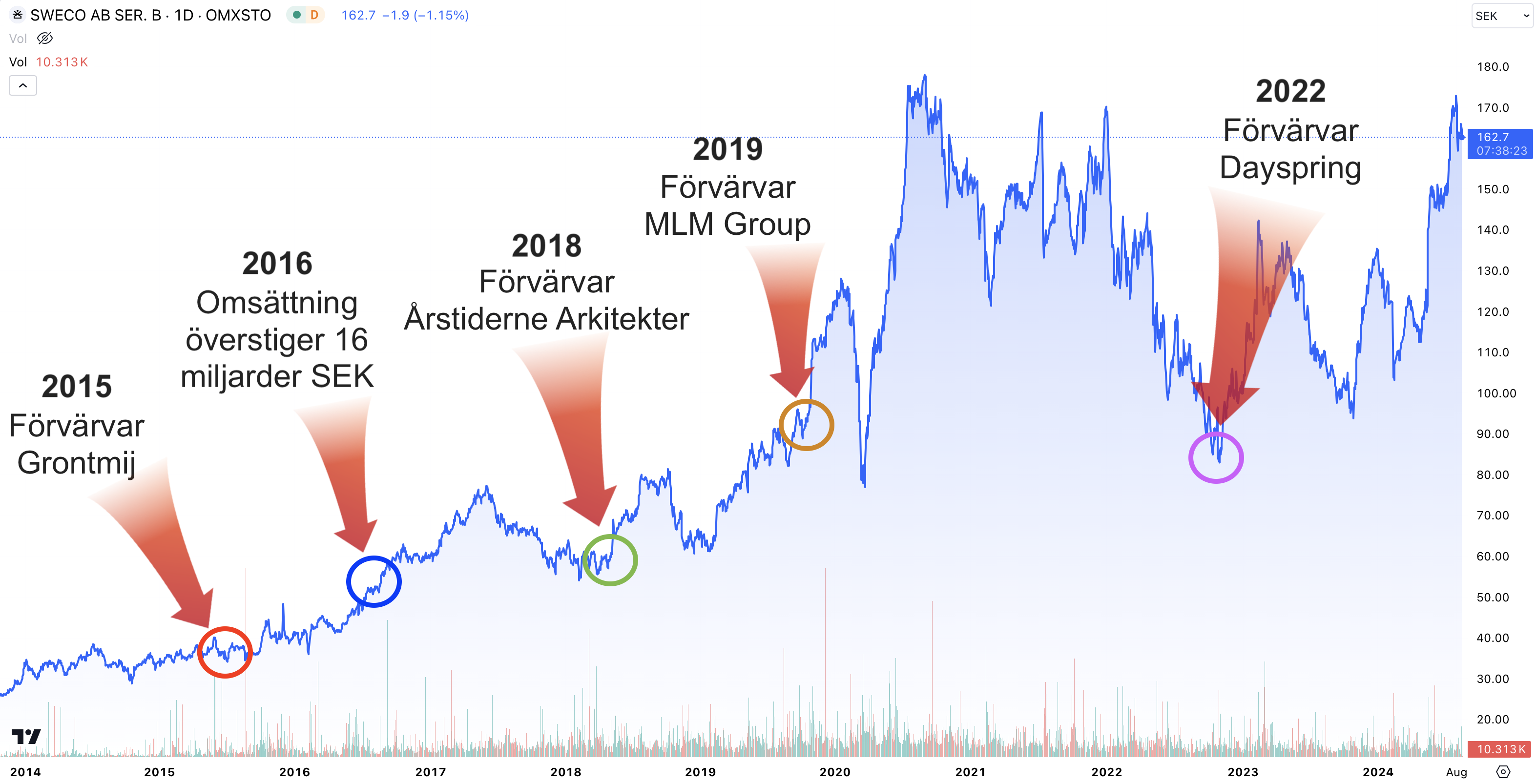 Sweco aktiekurs 2014 – 2024