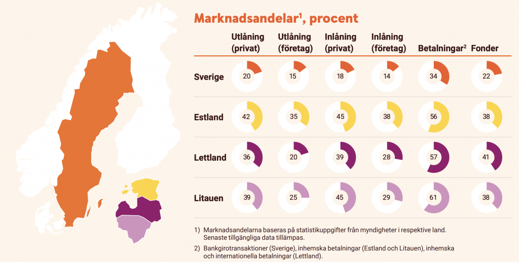Inom fonder innehar banken starka marknadsandelar i Baltikum på 38 % i både Estland och Litauen samt 41 % i Lettland. Marknadsandelen i Sverige uppgår till 22 %.