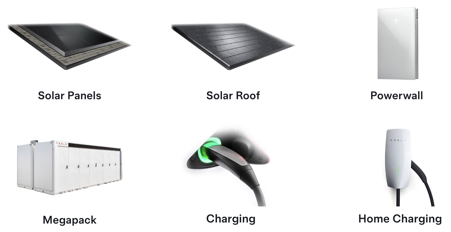 I affärssegmentet “Energy Generation, Storage and services” fokuserar Tesla på lösningar inom förnybar energi. De erbjuder produkter som Powerwall (batterier för hem) och Megapack (storskaliga energilagringssystem för bolag och nät). Tesla tillverkar också solpaneler till hushåll.