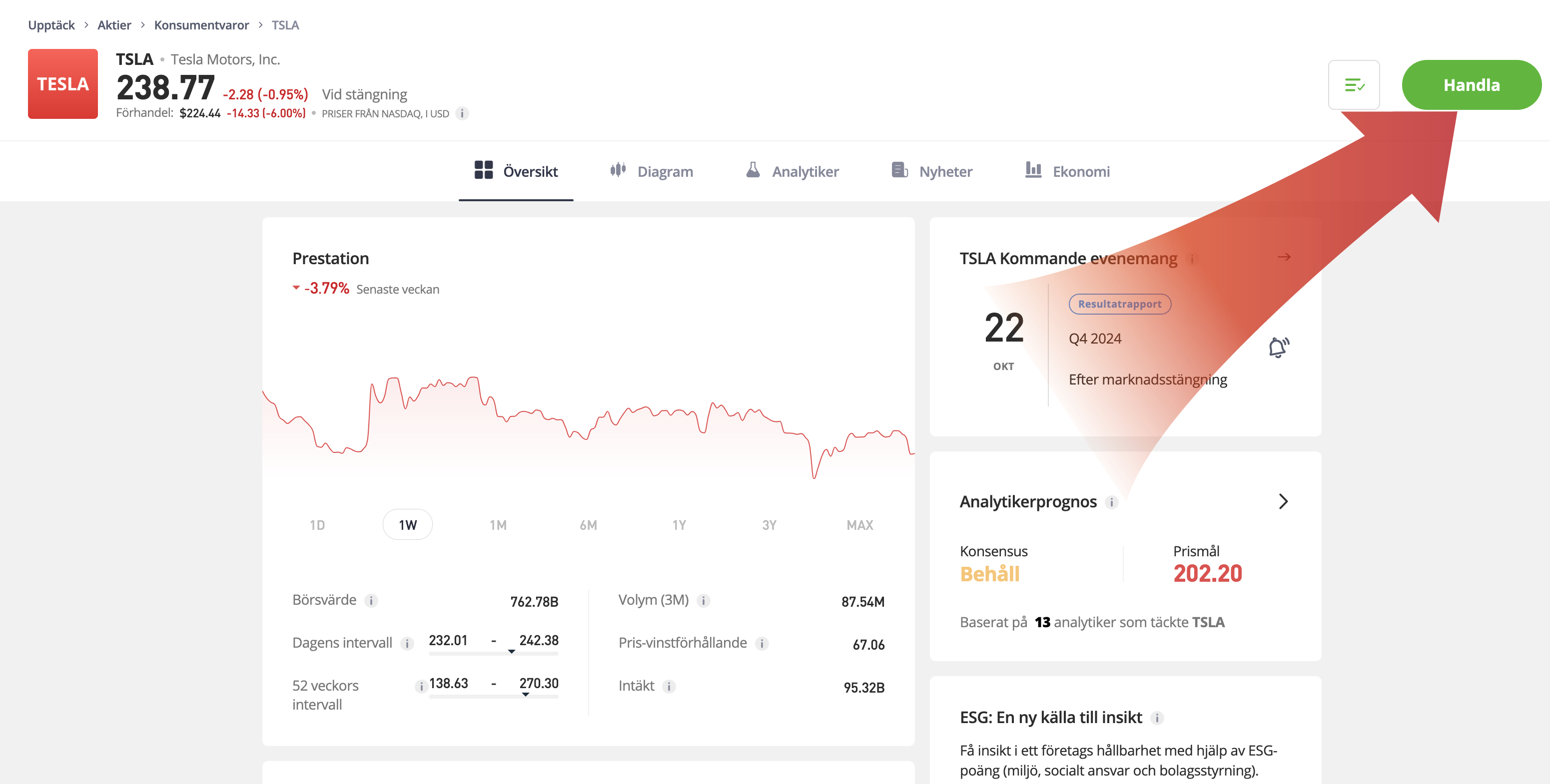 Här på vår kurssida kan du se vad en Tesla aktie kostar. Förutom att få tillgång till en kursgraf som uppdateras i realtid, ge även information om handelsvolym och tillgång till avancerade analysverktyg.