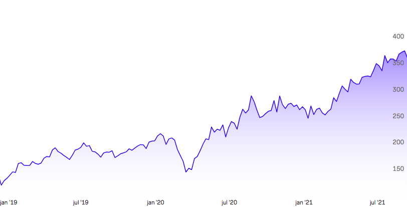 Meta Platforms aktiekurs 2019 till 2021: