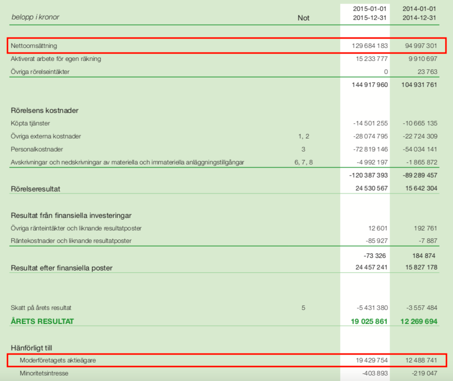 Vinsttillväxten är ännu mer häpnadsväckande och ett bevis på plattformens skalbarhet. Vinsten ökade från 19,4 Mkr till 347 Mkr. Det ger en ökning på 1 689 % eller en genomsnittlig tillväxttakt på 51 %. Se bild nedan.