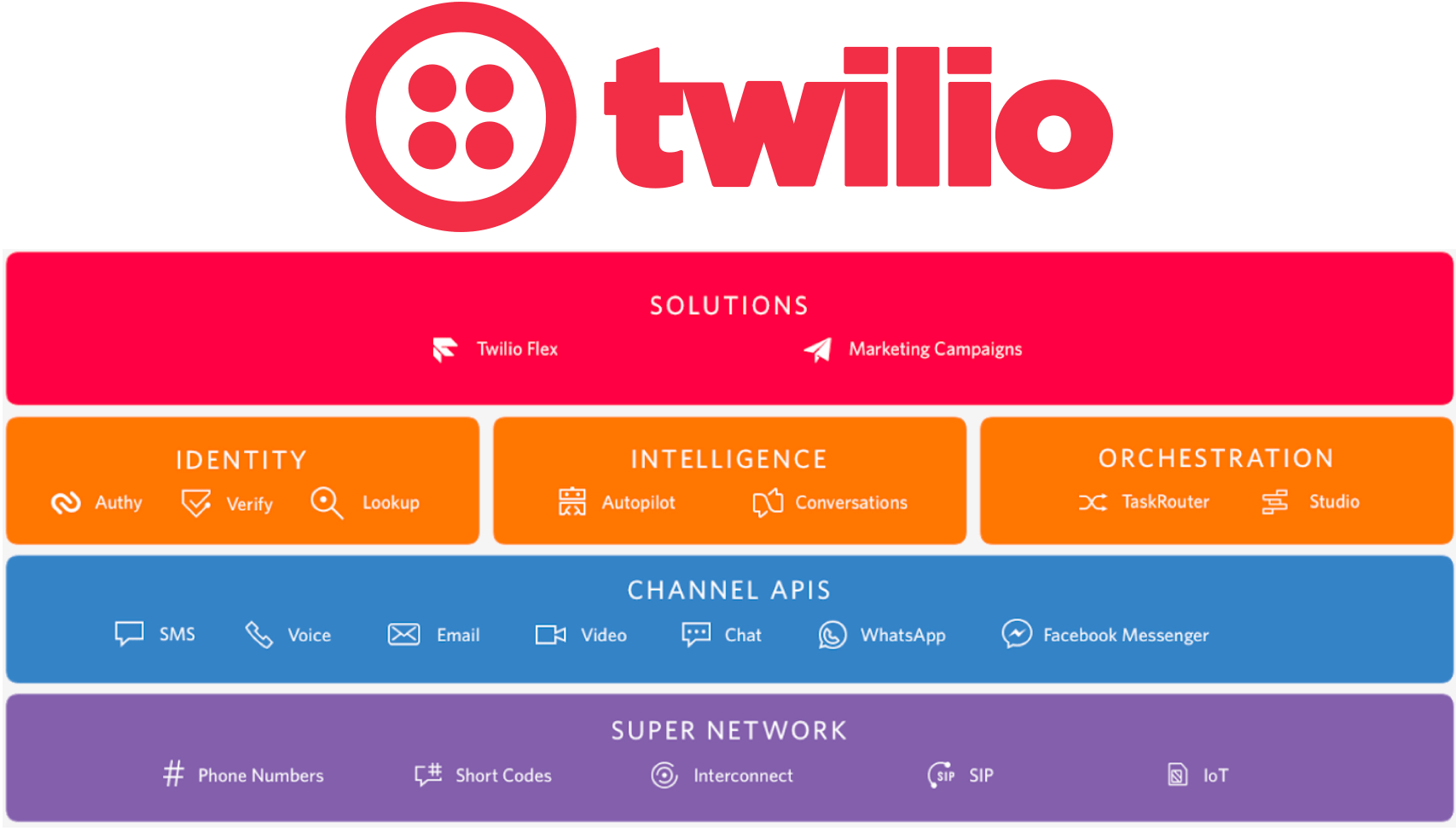 Twilios verksamhet består huvudsakligen av två delar: (1) “Communications” och (2) “Segment”. Nedan ges en kort förklaring av dem och vilka typer av lösningar/tjänster som ingår i varje segment.