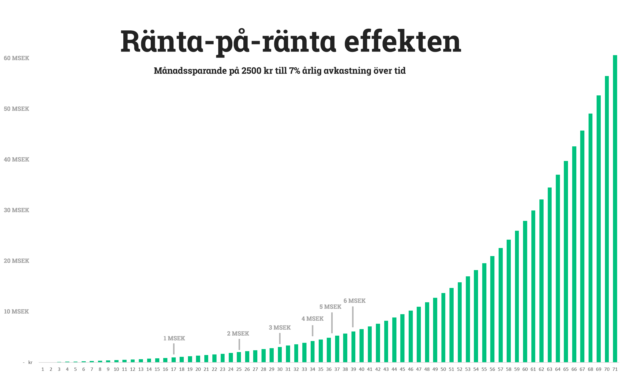 - Ränta-på-ränta effekten – Genom att investera i aktier med utdelning har du möjlighet till att ta del av ränta-på-ränta effekten. Ifall du planerar på att bygga dig en pengamaskin kan du återinvestera dina utdelningar i samma bolag. På så sätt ökar du dina framtida utdelningar.
