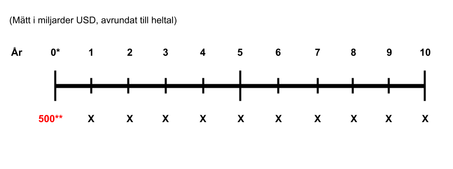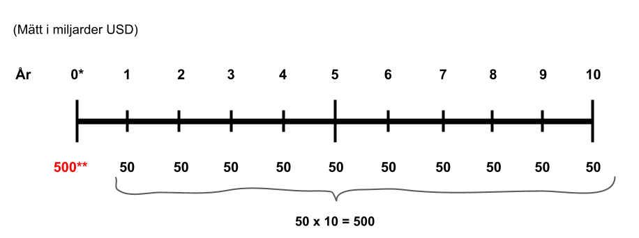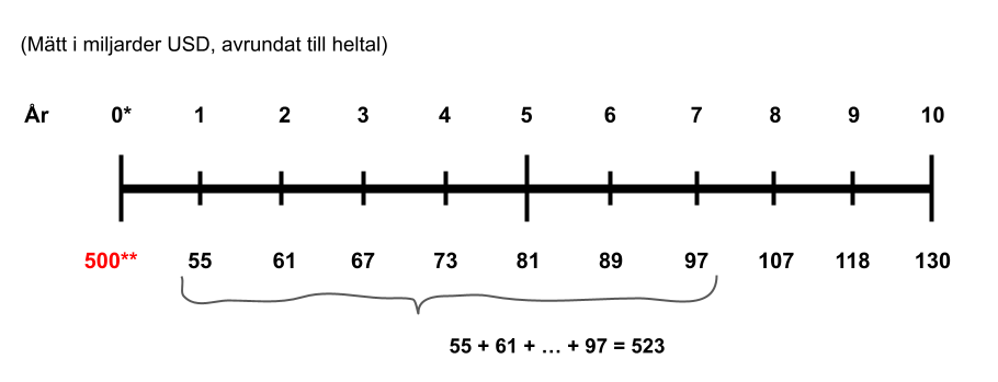 *År 0, som motsvarar år 2015, gjorde Apple en vinst på 50 miljarder USD.