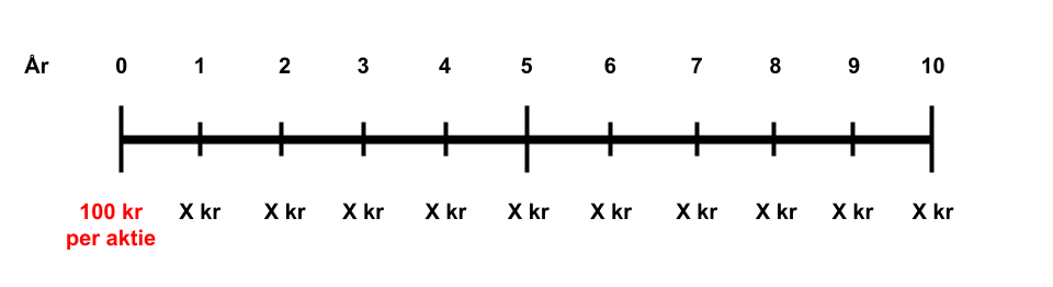 | 2. | Middle-case | Vinster förändras ej över tid. | Framtida vinster = 50 |