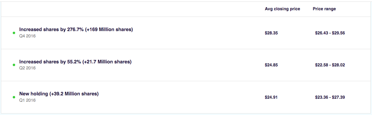 En kombination av låg värdering och starka konkurrensfördelar var en av anledningarna till varför världens bästa investerare, Warren Buffet, beslöt sig för att investera i bolaget. Via hans konglomerat, Berkshire Hathaway, köpte Buffett cirka 230 miljoner aktier i Apple under år 2016.