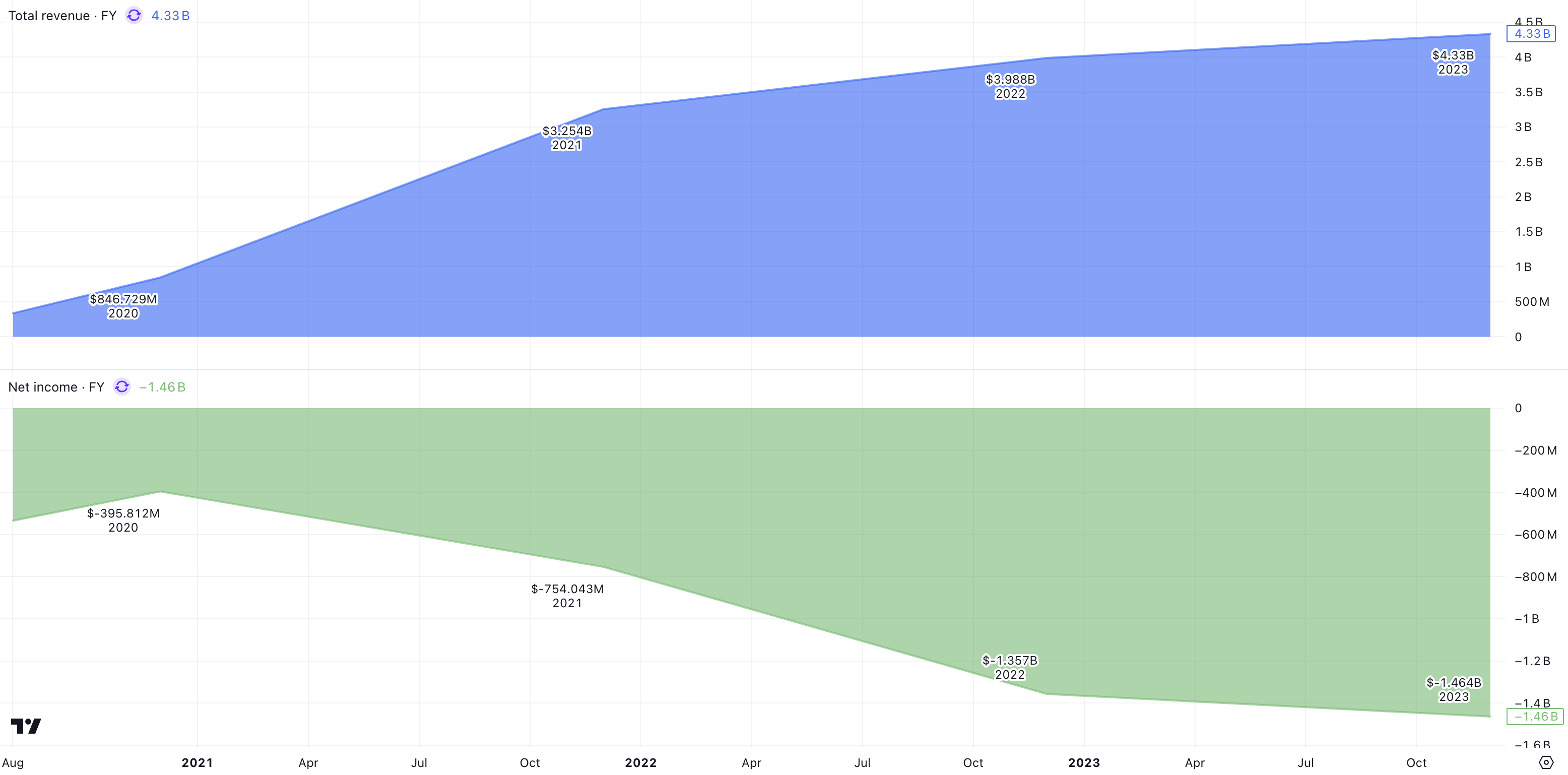 Samtidigt visar nettoresultatet en tydligt fördjupad förlust, från – 395,8 miljoner USD år 2020, till – 1,46 miljarder USD år 2023. Trots ökad omsättning har företaget alltså inte lyckats uppnå lönsamhet. Det beror på höga investeringar i forskning och utveckling, produktion och marknadsexpansion.