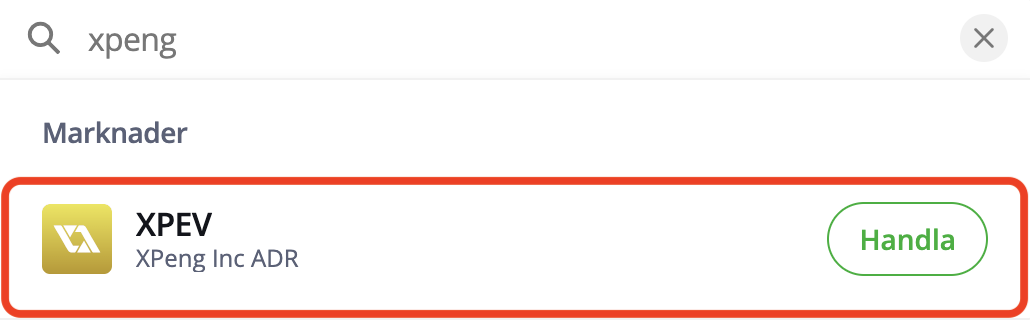 Har du pengar på ditt konto? Då klickar vi på sökknappen, söker efter XPeng aktie.